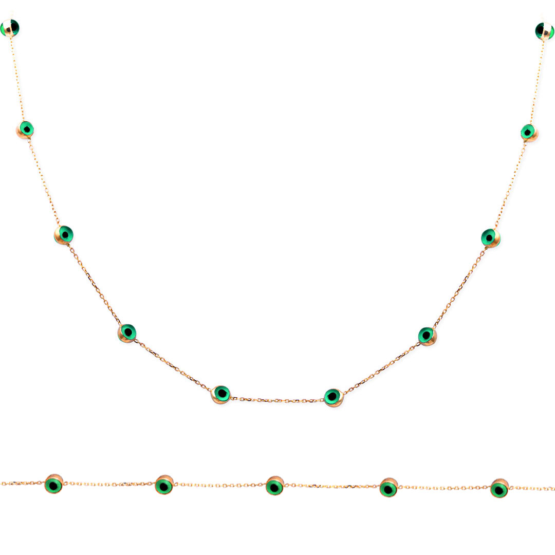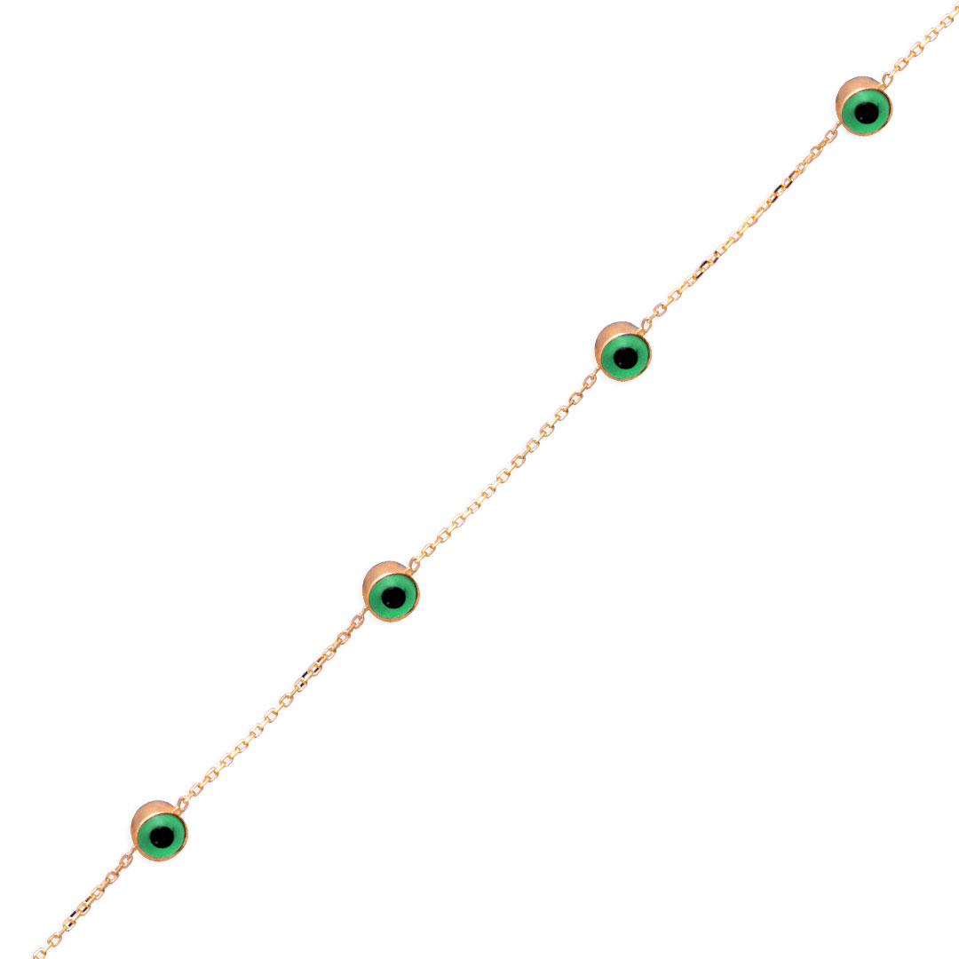 14 ayar altın yeşil nazar boncuklu kendinize yada sevdiklerinize armağan edebileceğiniz spor bileklik modeli ile zarif bir görüntü yakalayın. Model boyutu 19 cm olup 1.70 gram ağırlığındadır.