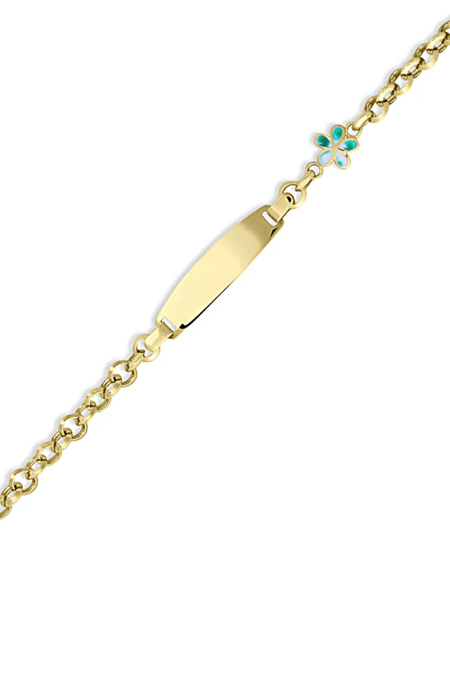 14 Cm boyunda günlük olarak da kullanıma uygun sağlam halka zincir detaylı yeşil çiçekli 14 ayar 3.20 gr ağırlığında altın taşsız çocuk künyesi. Modele ücretsiz olarak isim yazdırabilirsiniz.