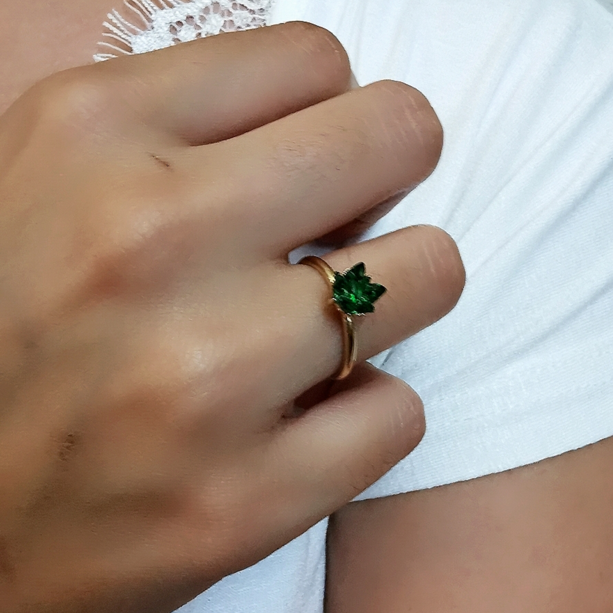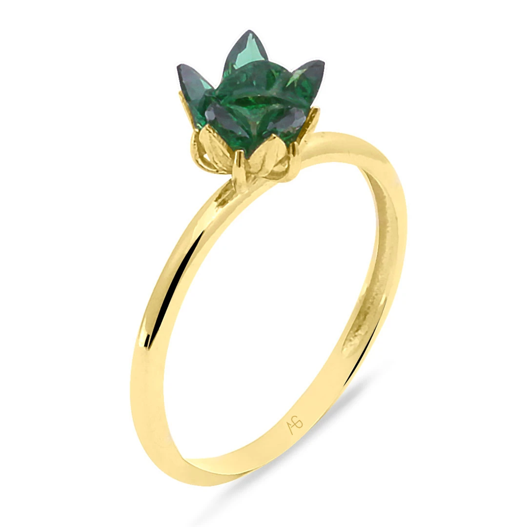 2 Gram Ağırlığında El İşçiliğiyle Takılan Yeşil Markiz Taş Detaylı Minimal Tasarımıyla Oldukça Şık Ve Sade Bir Duruşa Sahip 14 Ayar Altın Lotus Çiçeği Yüzük.