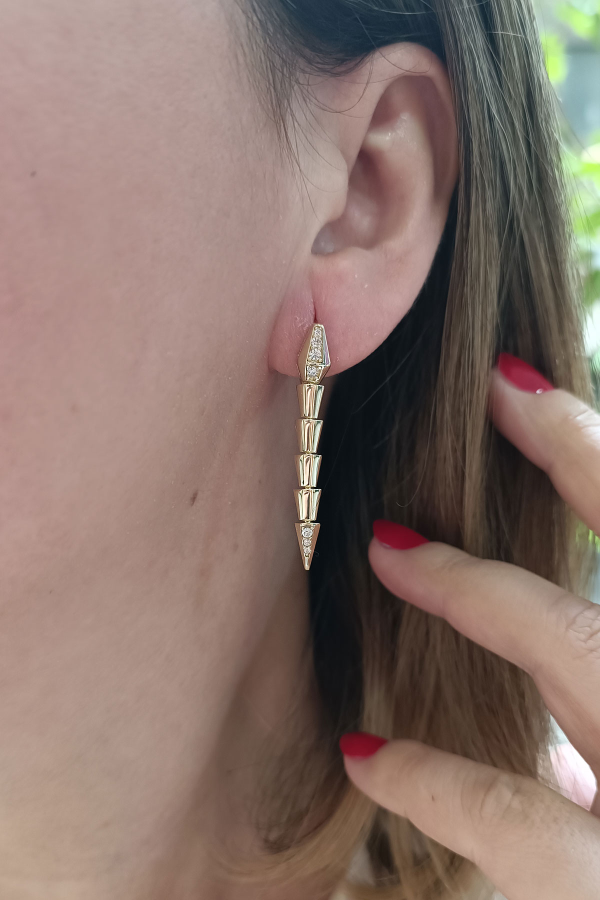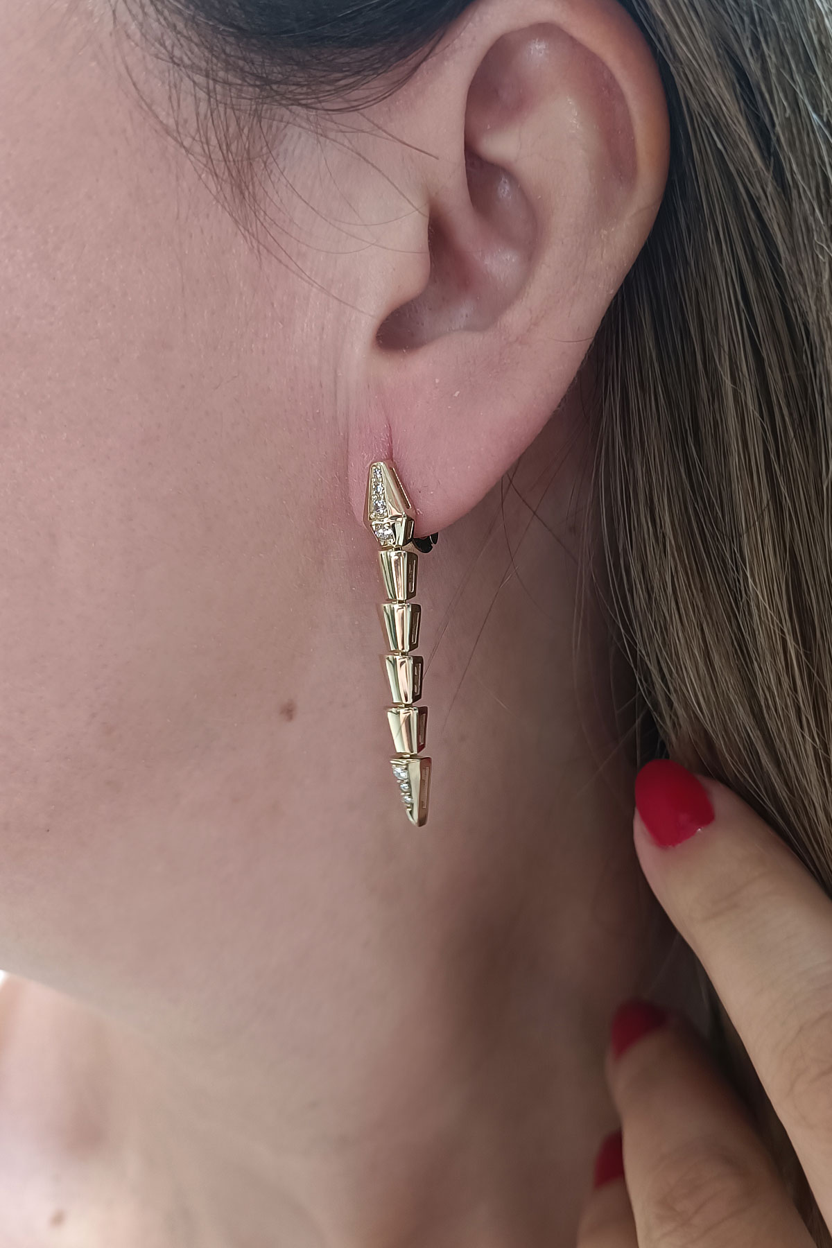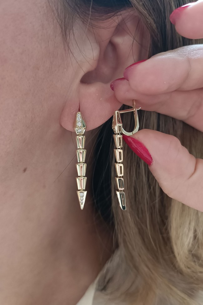 14 Ayar şık ve modern tasarım günlük kullanıma uygun taşlı ışıl ışıl özel yılan tasarımıyla iddialı bir model 5.20 gram ağırlığında altın küpe.