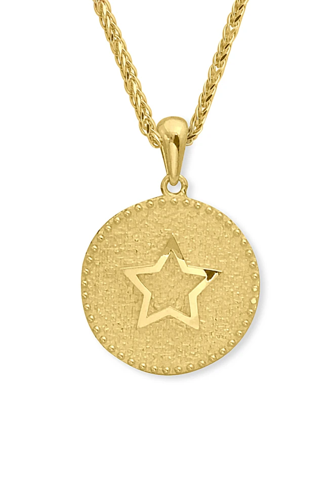 14 Ayar 4.30 gram ağırlığında 45 cm boyunda spiga ışıl ışıl zinciriyle tüm gün gömlek ve basic tişörlerinizle severek kullanacağınız, spor giyim tarzınıza da muhteşem uyum sağlayacak 2.5 cm otantik tasarım yuvarlak taşsız yıldız kolye.