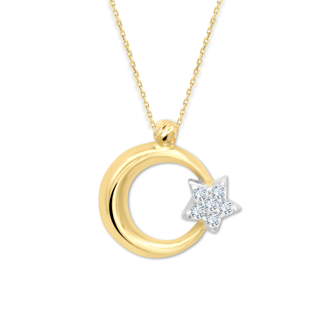 45 Cm zincirli 1.80 gr. 14 ayar altın milli gururumuz olan şanlı bayrağımızın temsilcisi altın 1.3 cm boyutunda yıldızı taşlı ay yıldız kolye. Sadece milli günlerde değil, milli gururunu her daim yüreğinde taşıyanların boynundan ayırmak istemeyeceği harika bir tasarım.