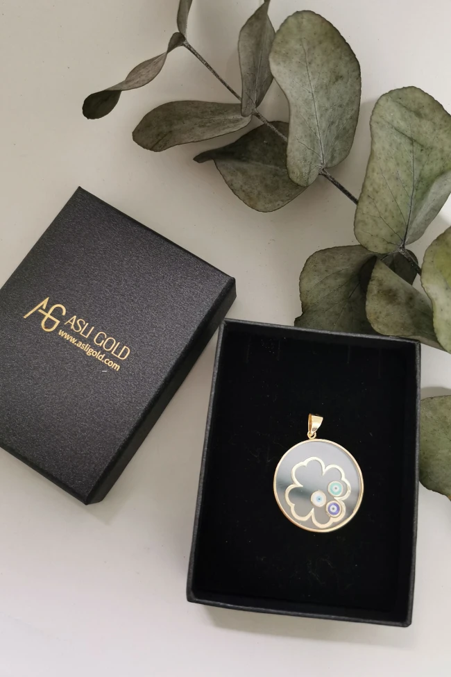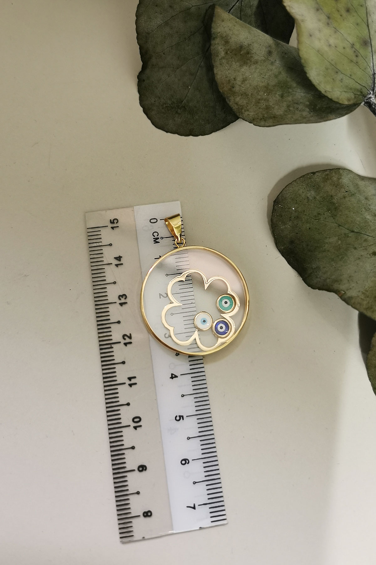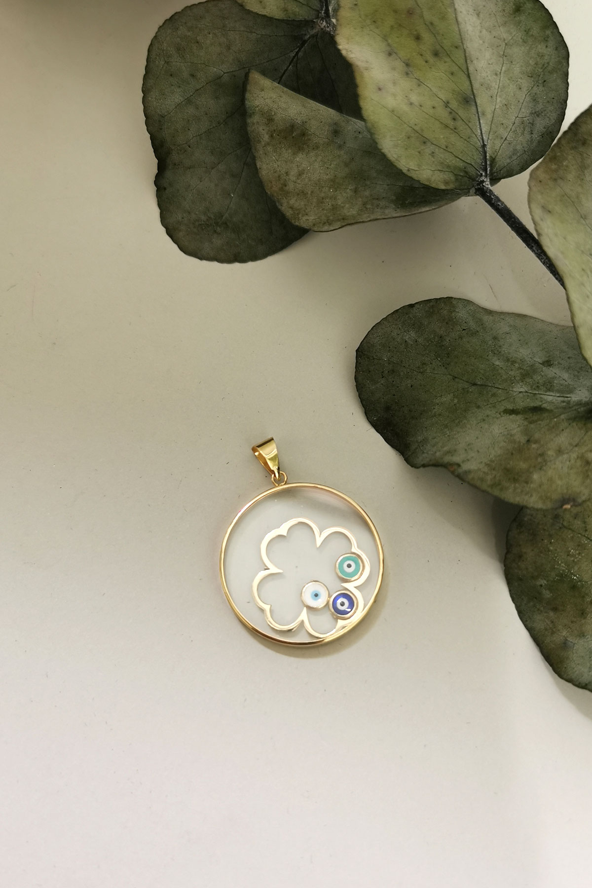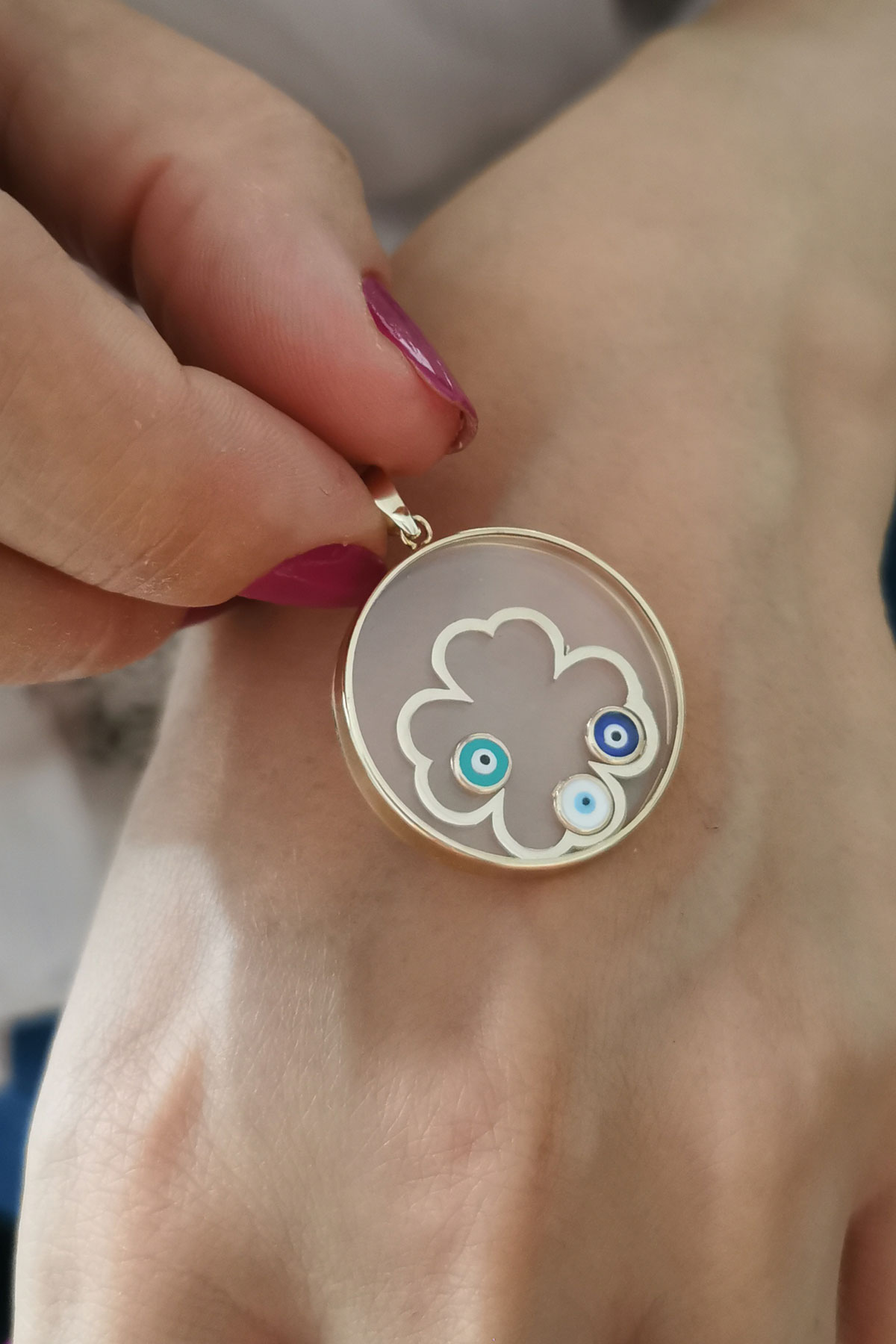 por Ve Günlük Kullanıma Uygun Işıl Işıl İçi Mineli Mavi Nazar Boncuğu Ve Yonca Detaylı 5.20 Gr. Ağırlığında Altın Camlı Tasarım Kolye.