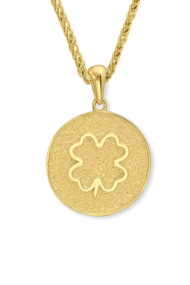 14 Ayar 4.25 gram ağırlığında 45 cm boyunda spiga ışıl ışıl zinciriyle tüm gün gömlek ve basic tişörlerinizle severek kullanacağınız, spor giyim tarzınıza da muhteşem uyum sağlayacak 2.5 cm otantik tasarım yonca şans kolye.