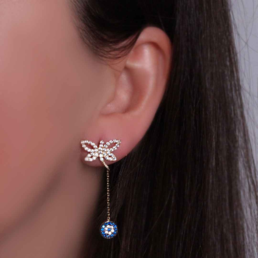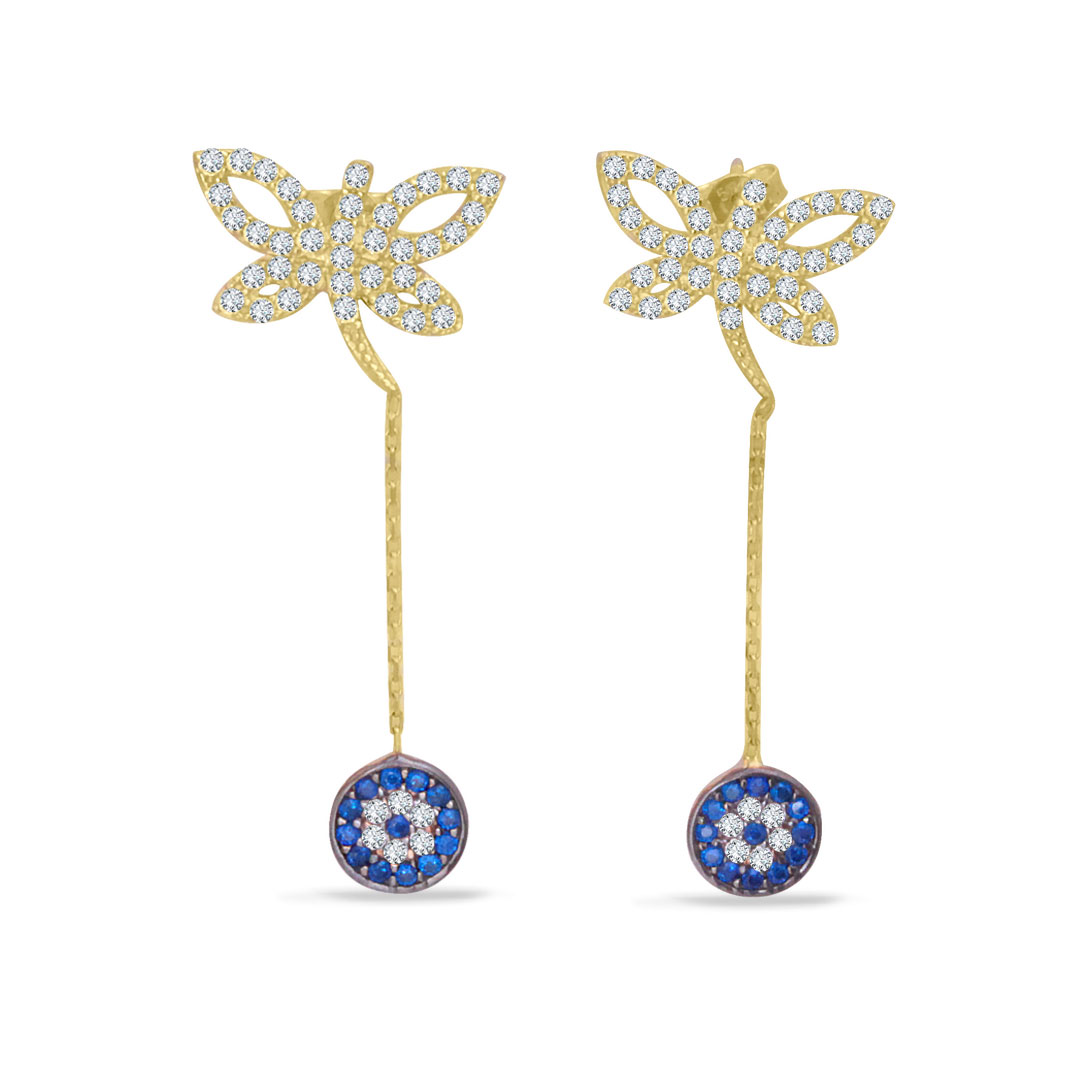 14 Ayar 4 cm boyutunda yusufçuk detaylı ışıl ışıl ve sempatik duruşa sahip günlük kullanıma uygun 3.80 gram ağırlığında spor nazar boncuğu figürlü altın küpe.