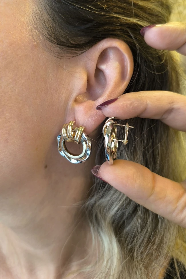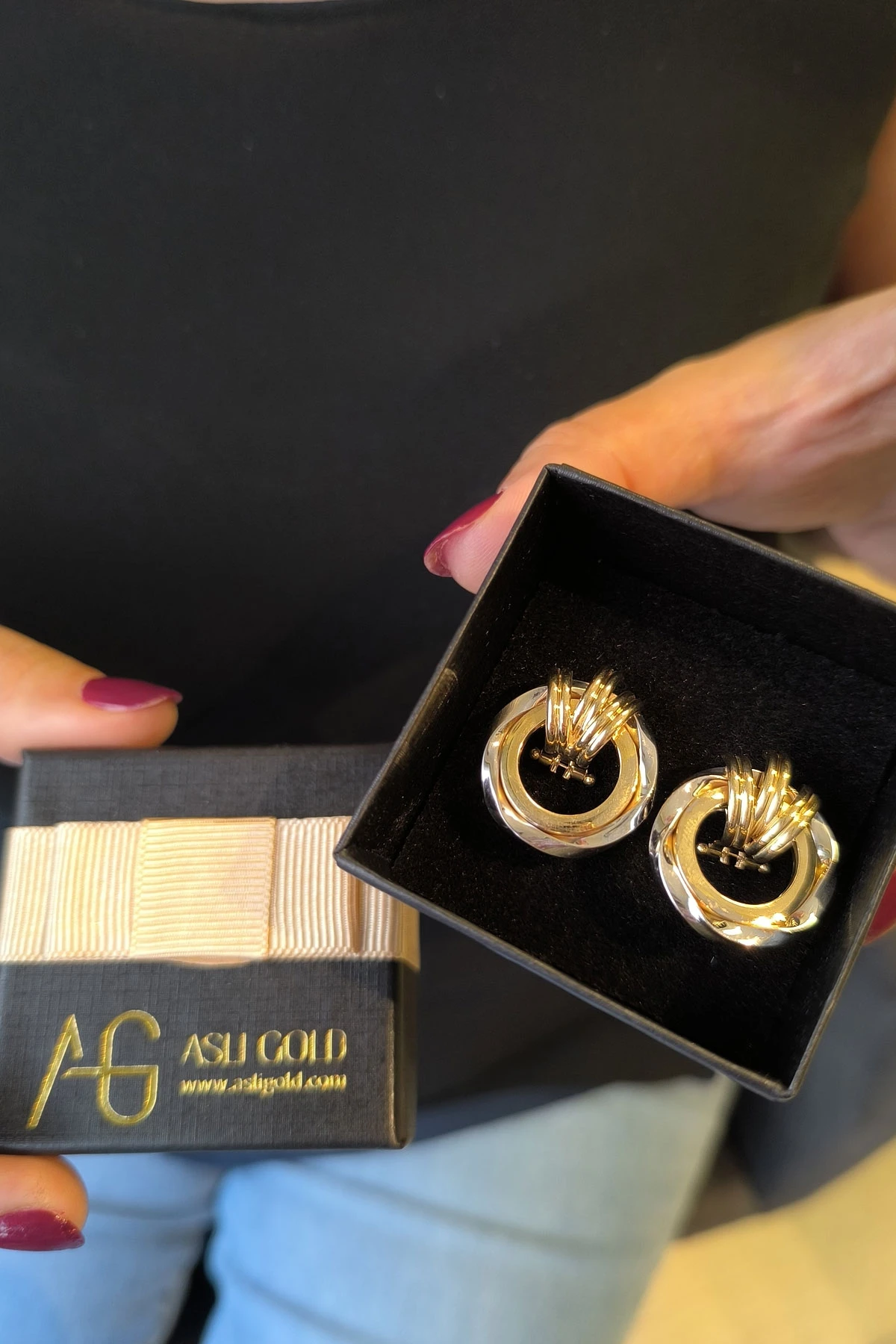 14 Ayar yuvarlak formlu modern tasarımı ile şık ve farklı bir duruşa da sahip günlük kullanıma uygun taşsız altın çember küpe.