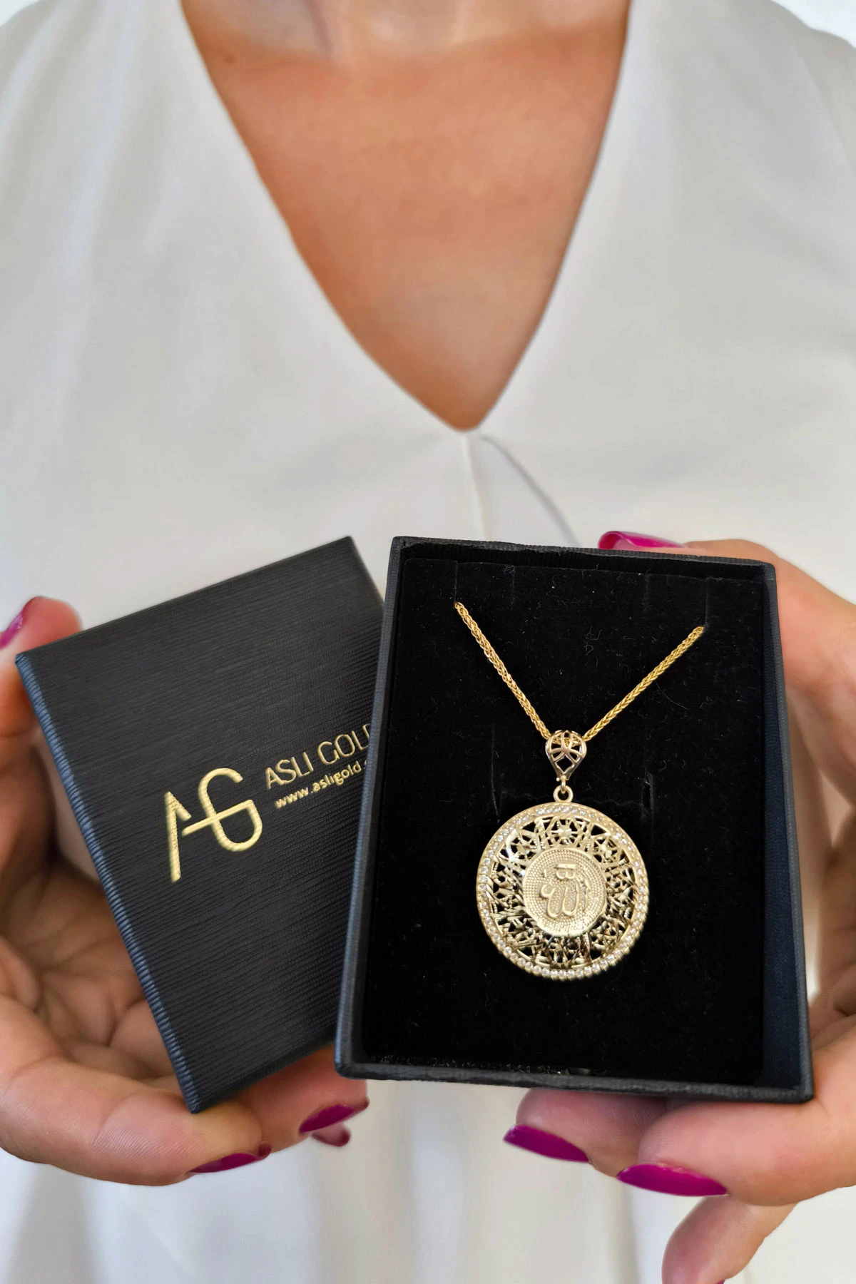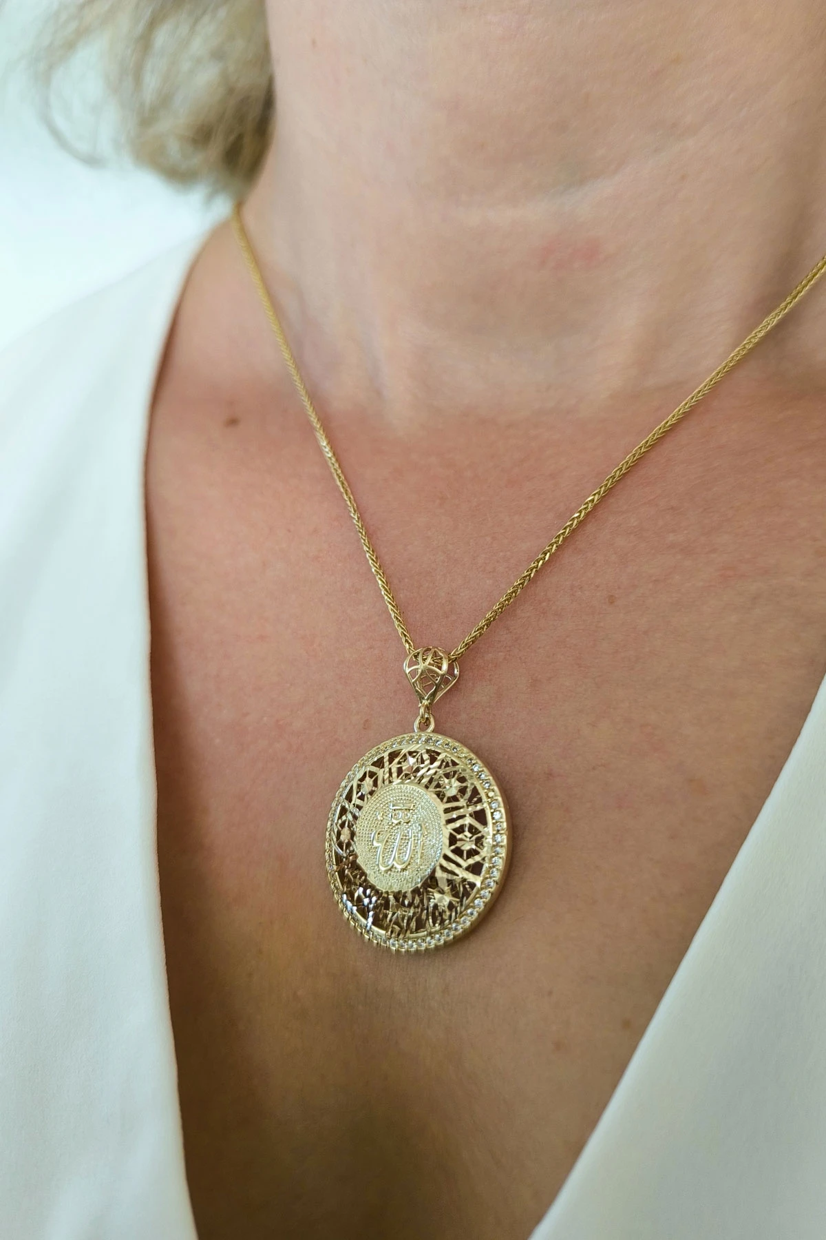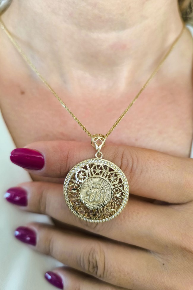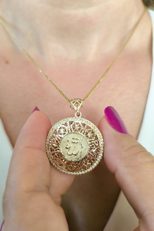 Dua tasarımı ile günlük olarak da kullanabileceğiniz, özel günlerinde sevdiklerinize şık bir hediye seçeneği olacak 4 cm boyutunda 7 gr. ağırlığında 14 ayar altın kolye