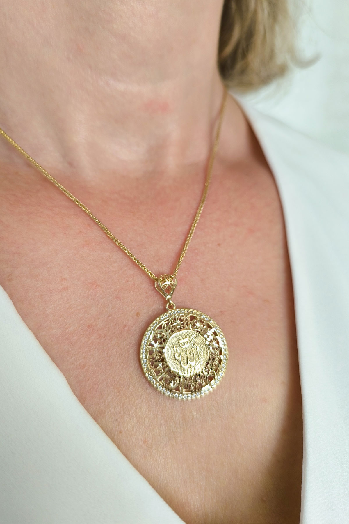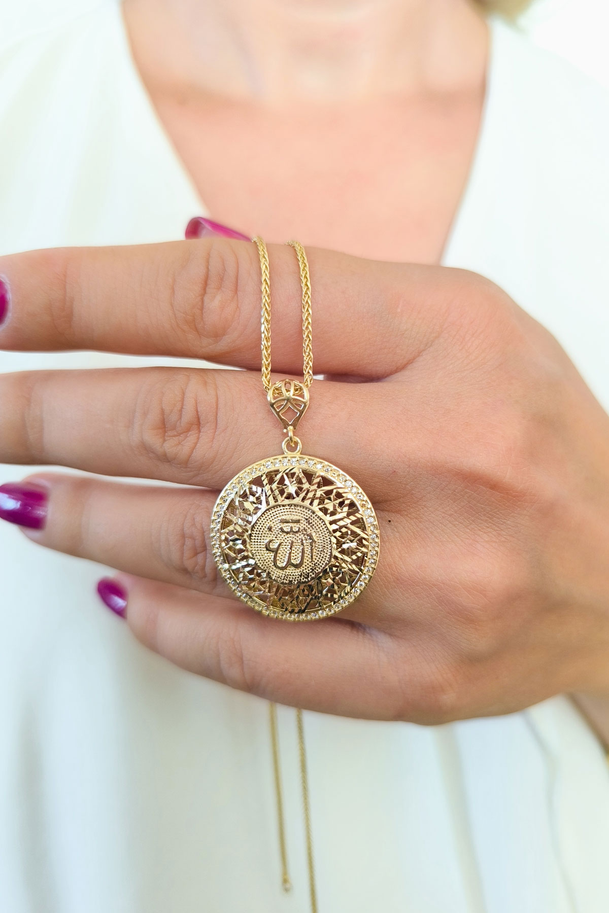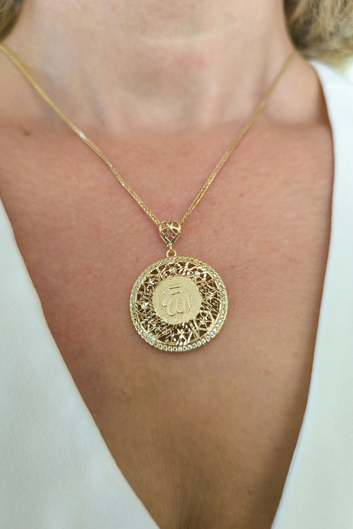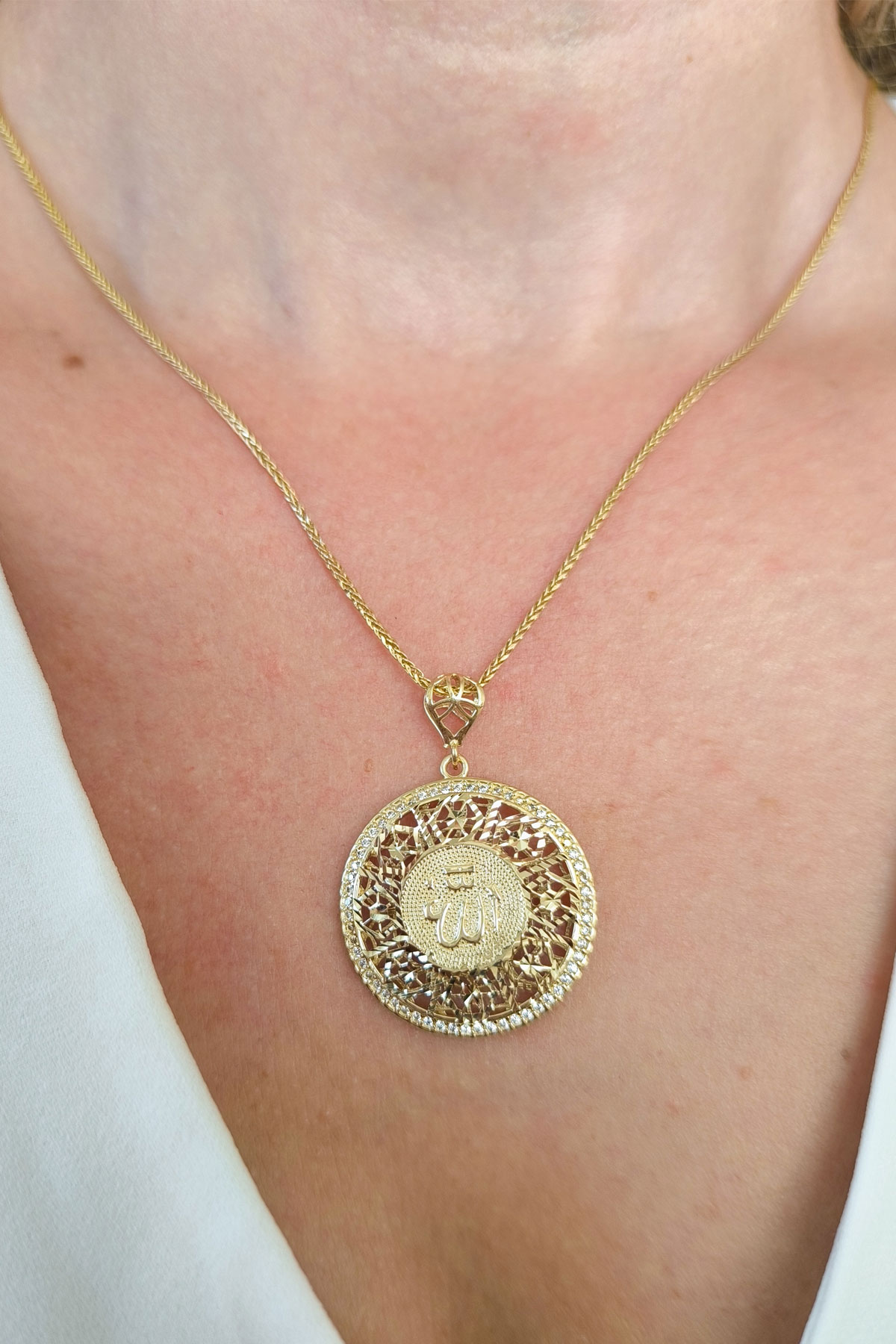Dua tasarımı ile günlük olarak da kullanabileceğiniz, özel günlerinde sevdiklerinize şık bir hediye seçeneği olacak 4 cm boyutunda 7 gr. ağırlığında 14 ayar altın kolye