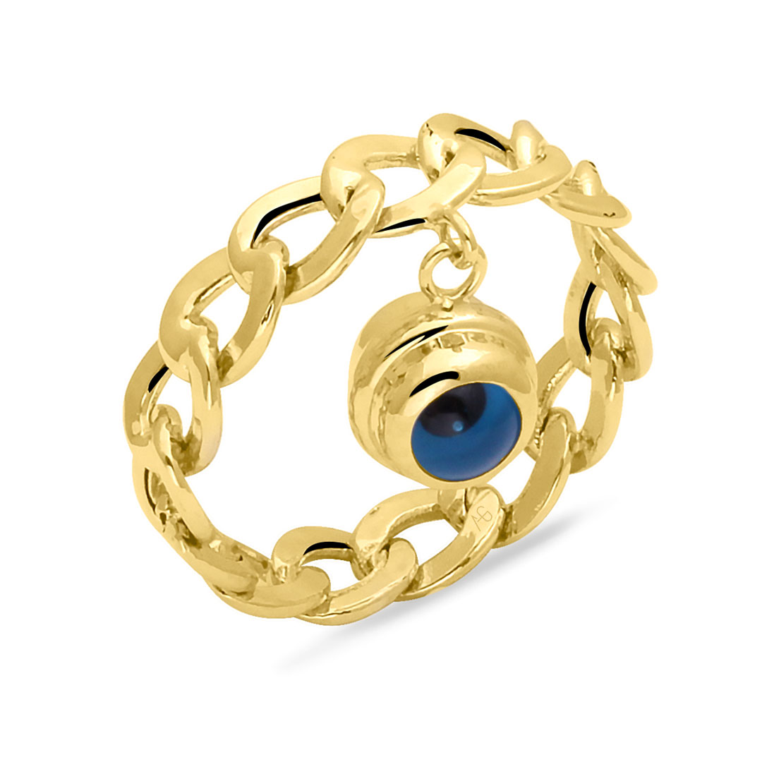 14 Ayar altın 2.40 gram ağırlığında zincir tasarımlı nazar boncuğu detayıyla her zaman severek kullanacağınız, spor giyim tarzınıza muhteşem uyum sağlayacak sarı altın göz yüzük.