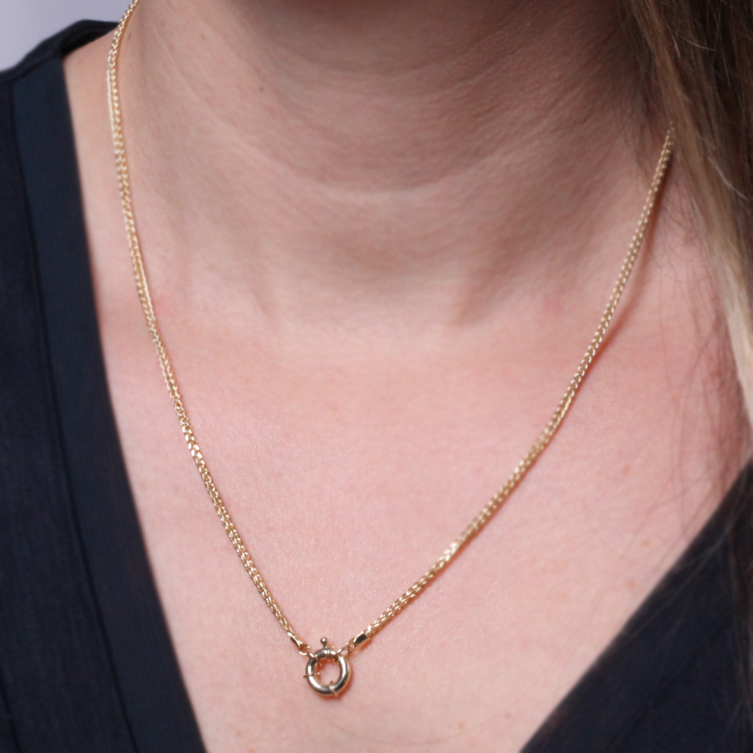 Sezonun yeni trendi uzun süredir popülerliğini koruyan omega kilit detaylı 14 ayar altın zincir kolye. Farklı kolye modelleriniz ile bir arada kullanabileceğiniz kilit kısmını ön tarafa getirerek kolye uçlarınızla bir arada kullanabileceğiniz yeni moda tasarım! Model boyutu 50 cm olup 4.10 gram ağırlığındadır.