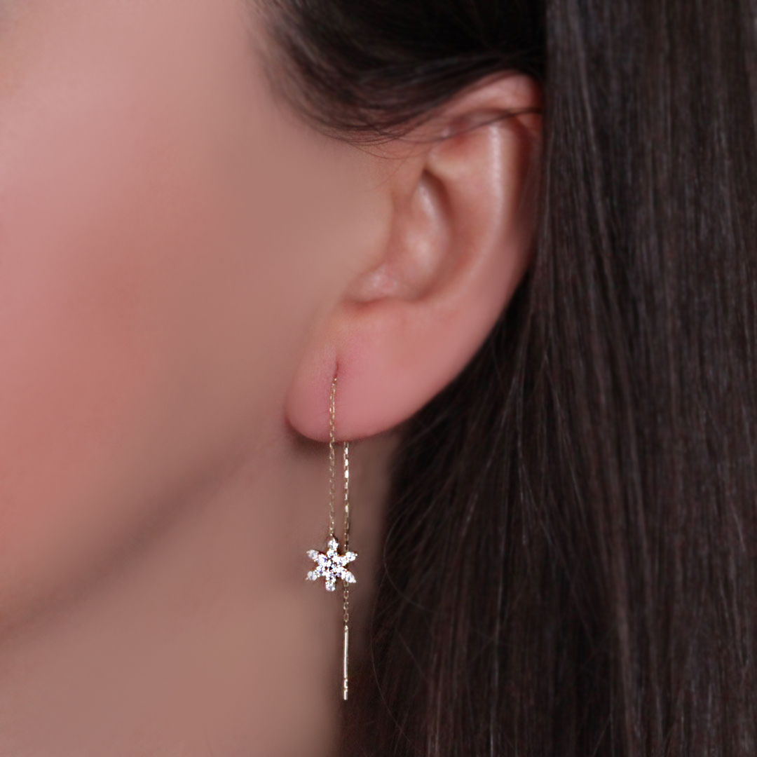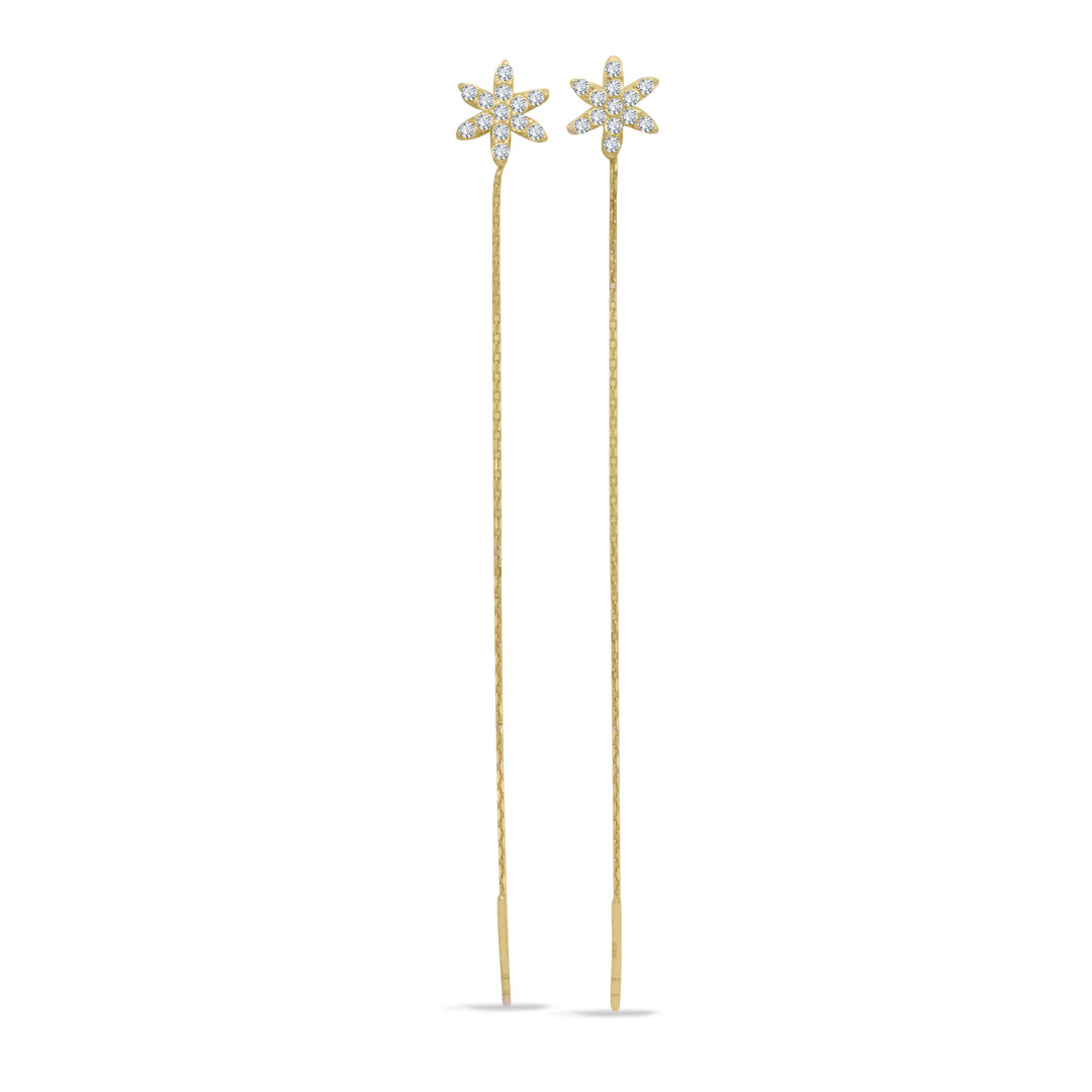 14 Ayar zirkon taş detaylı ışıl ışıl ve sempatik duruşa sahip günlük kullanıma uygun 1.05 gram ağırlığında 8.5 cm uzunluğunda spor mini taşlı zincir altın küpe.