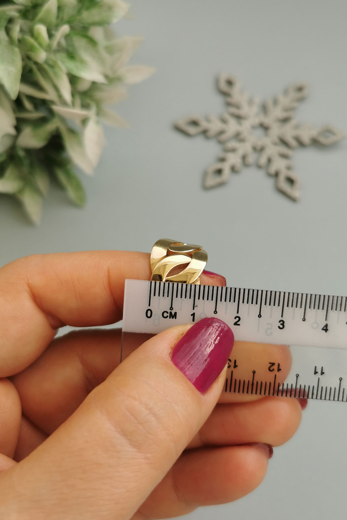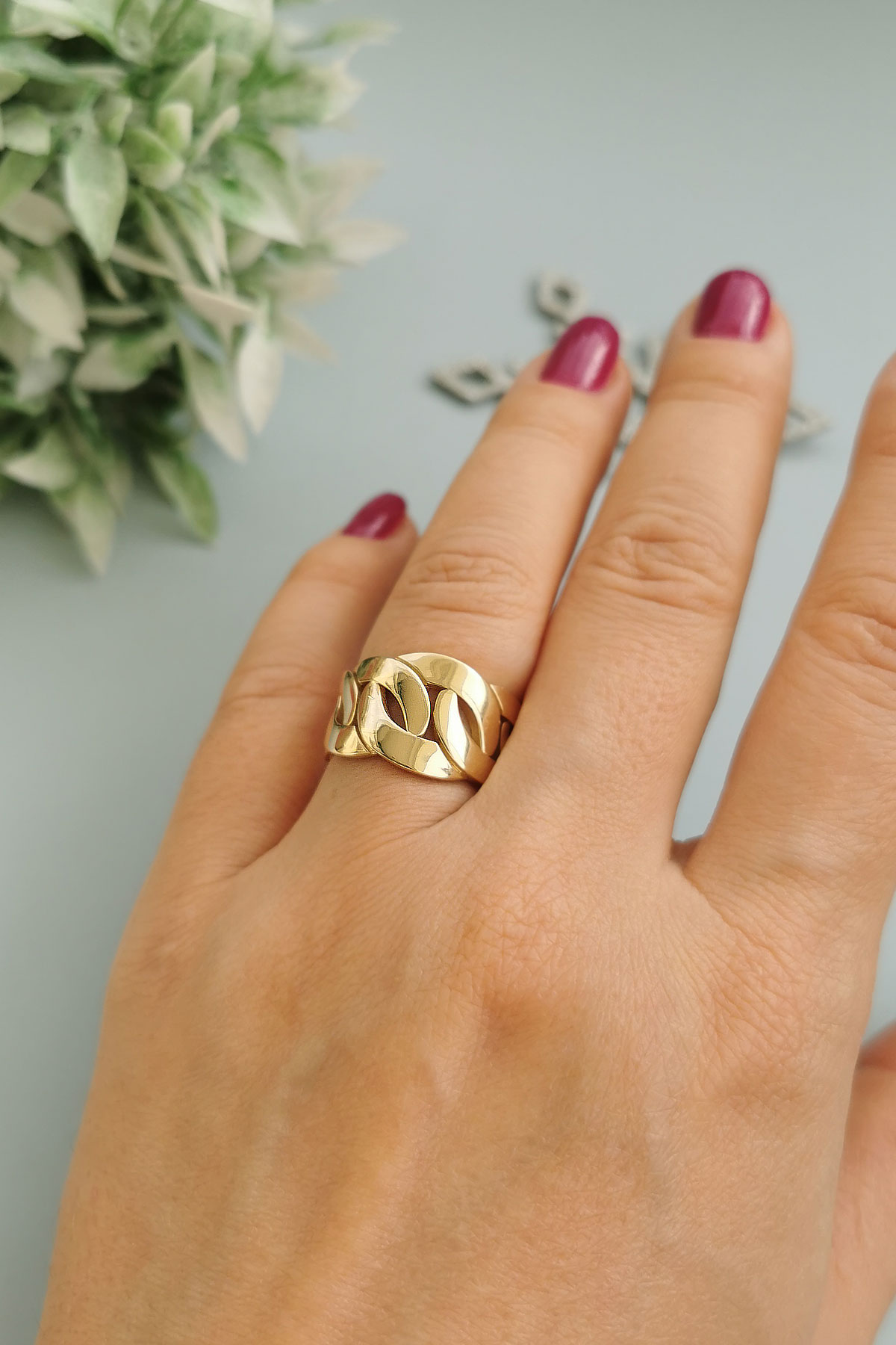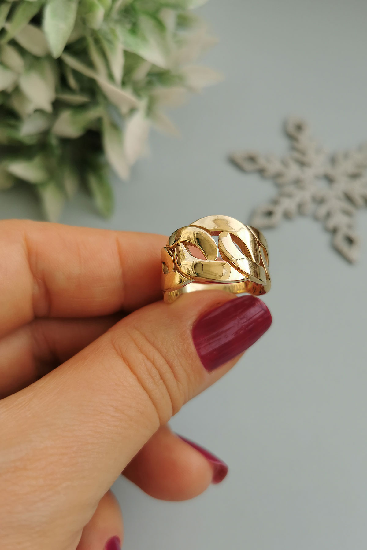 3.90 Gram Ağırlığında 14 Ayar Şık Ve Modern Kalın Zincir Örgü Tasarımıyla Farklı Bir Havaya Sahip Sade Taşsız Altın Kadın Yüzük.