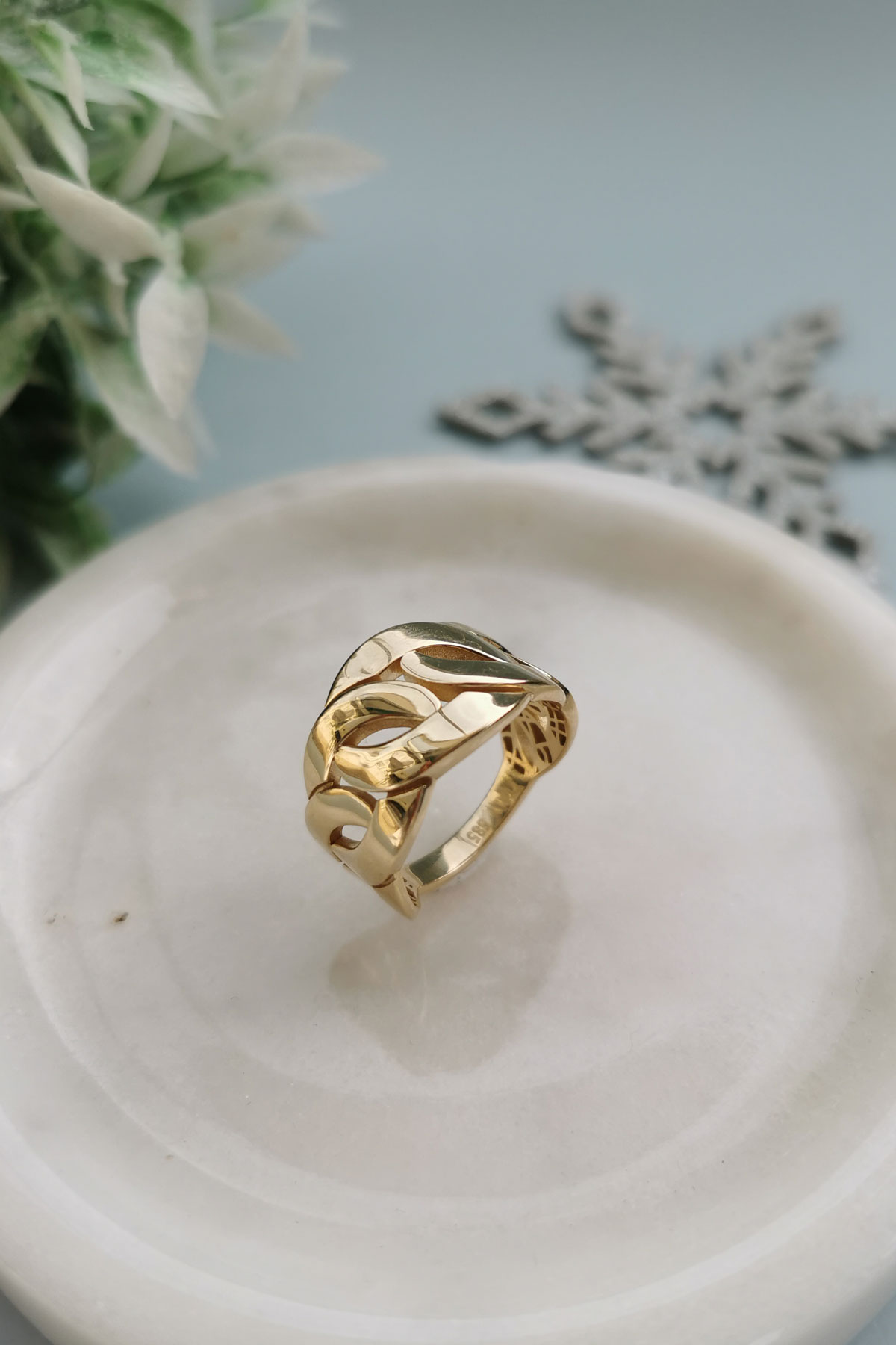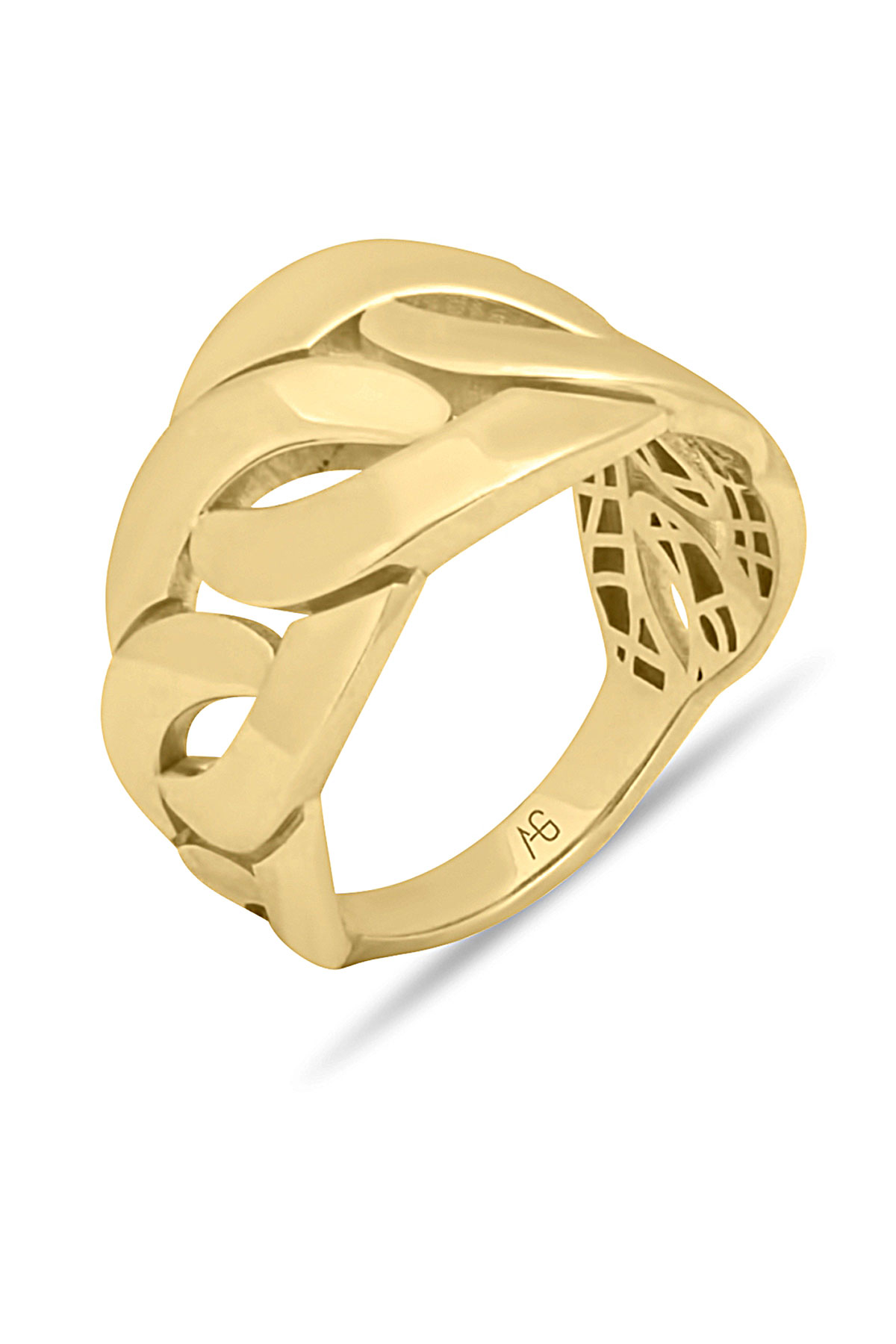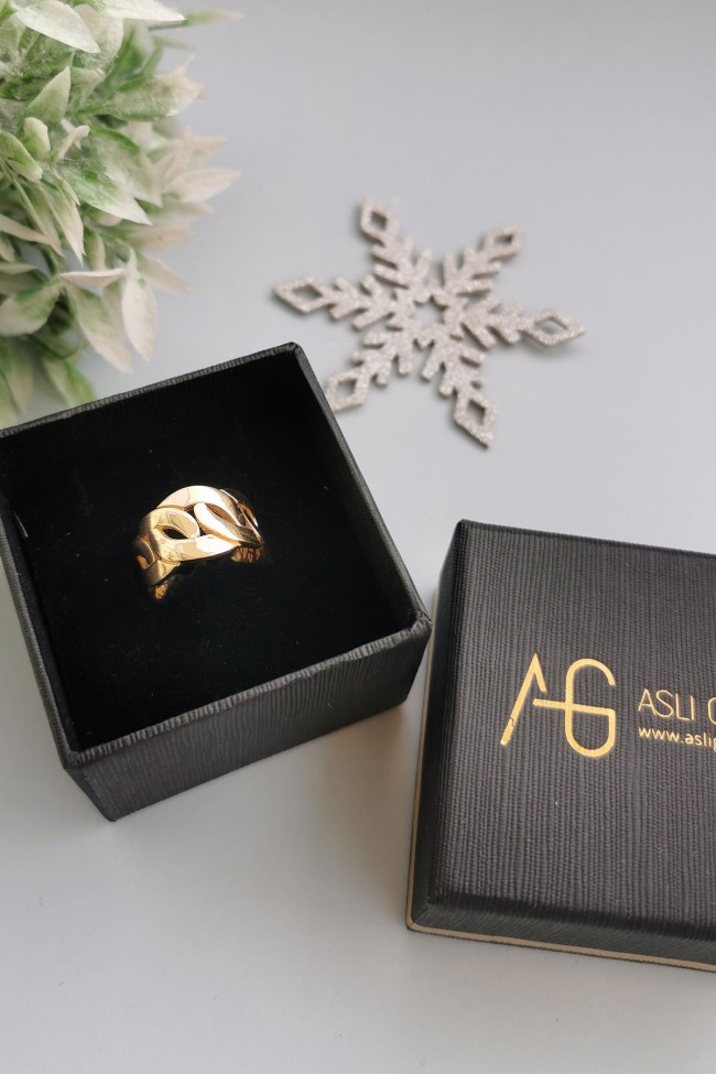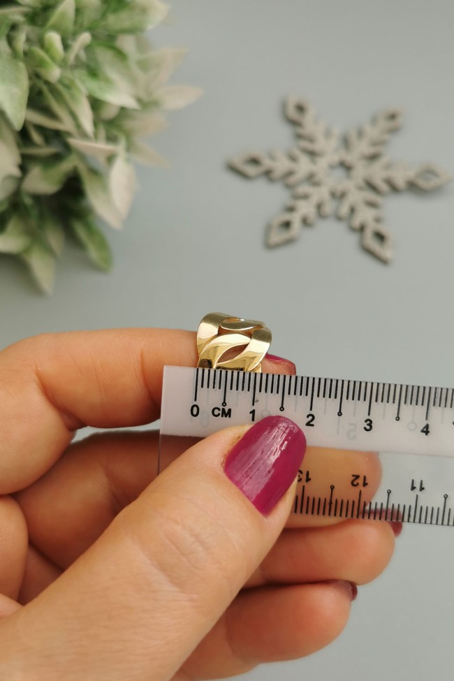 3.90 Gram Ağırlığında 14 Ayar Şık Ve Modern Kalın Zincir Örgü Tasarımıyla Farklı Bir Havaya Sahip Sade Taşsız Altın Kadın Yüzük.