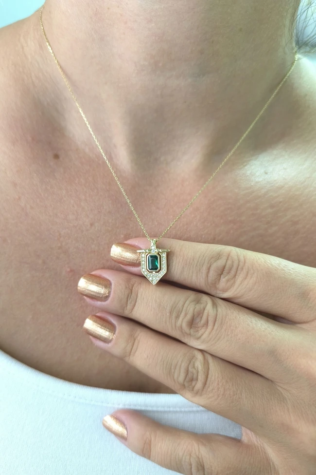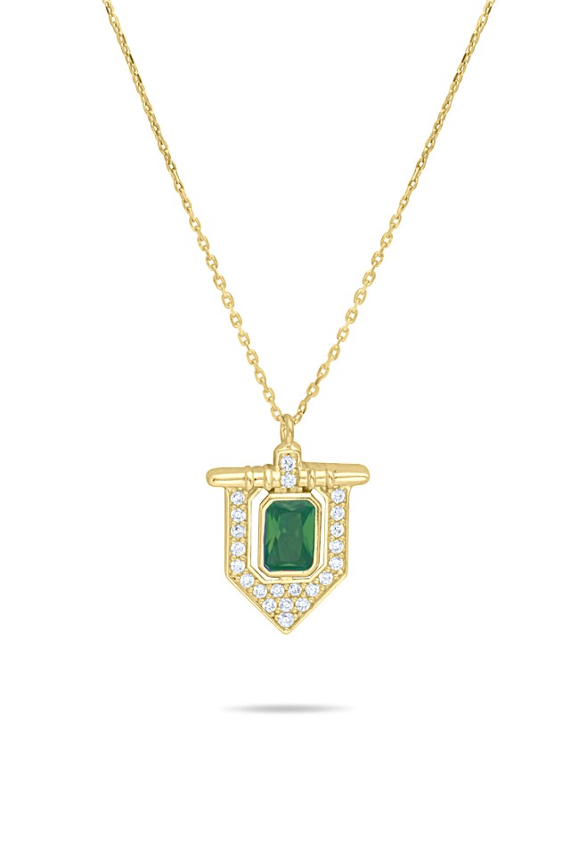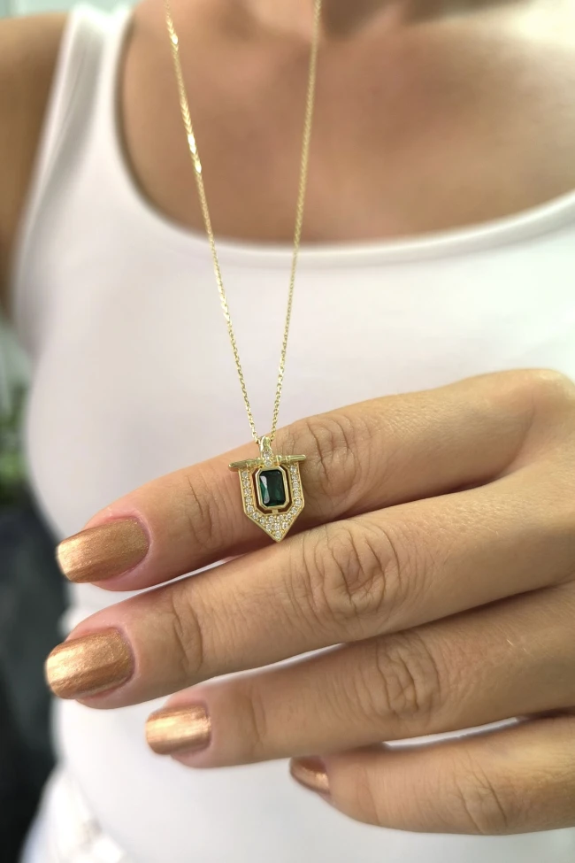 45 Cm zincirli 2.60 gr. 2 cm boyutunda zirkon zümrüt taş detaylı otantik model 14 ayar altın kolye.