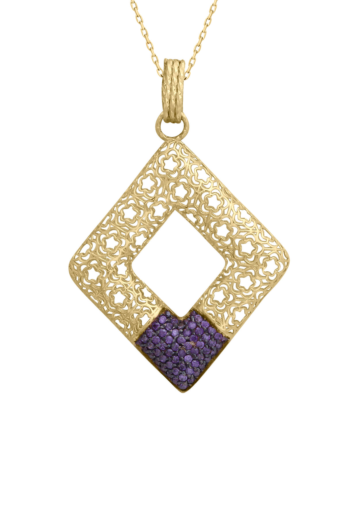 14 Ayar günlük kullanıma uygun farklı tasarımlar ile güne imzasını atmayı seven kadınlara özel bir modele sahip tüm kombinlerinize eşlik edecek ametist taşlı 4.45 gram ağırlığında altın füzyon ışıl ışıl italyan tasarım kolye.