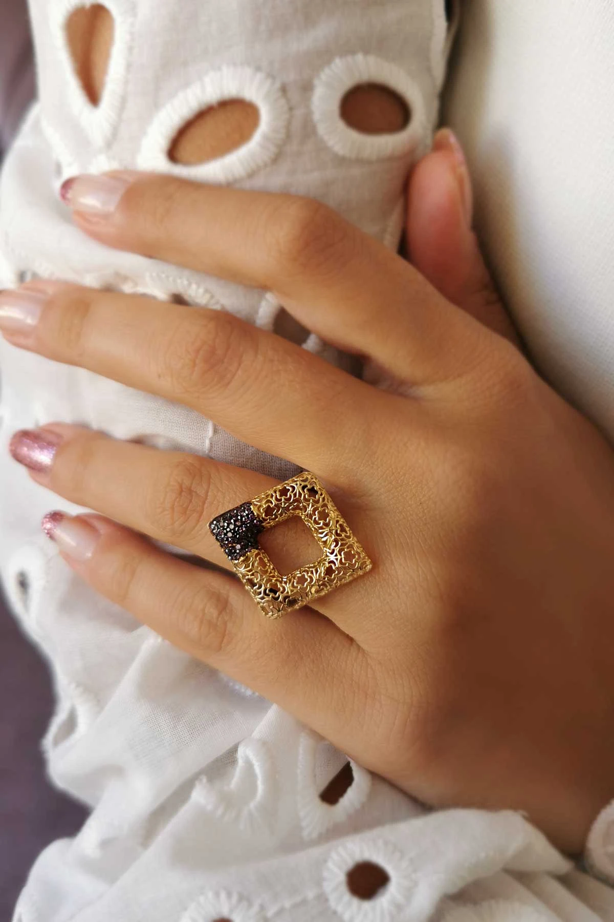 14 Ayar günlük kullanıma da uygun farklı tasarımlar ile güne imzasını atmayı seven kadınlara özel bir modele sahip tüm kombinlerinize eşlik edecek 4.00 gram ağırlığında altın füzyon ışıl ışıl italyan tasarım yüzük.