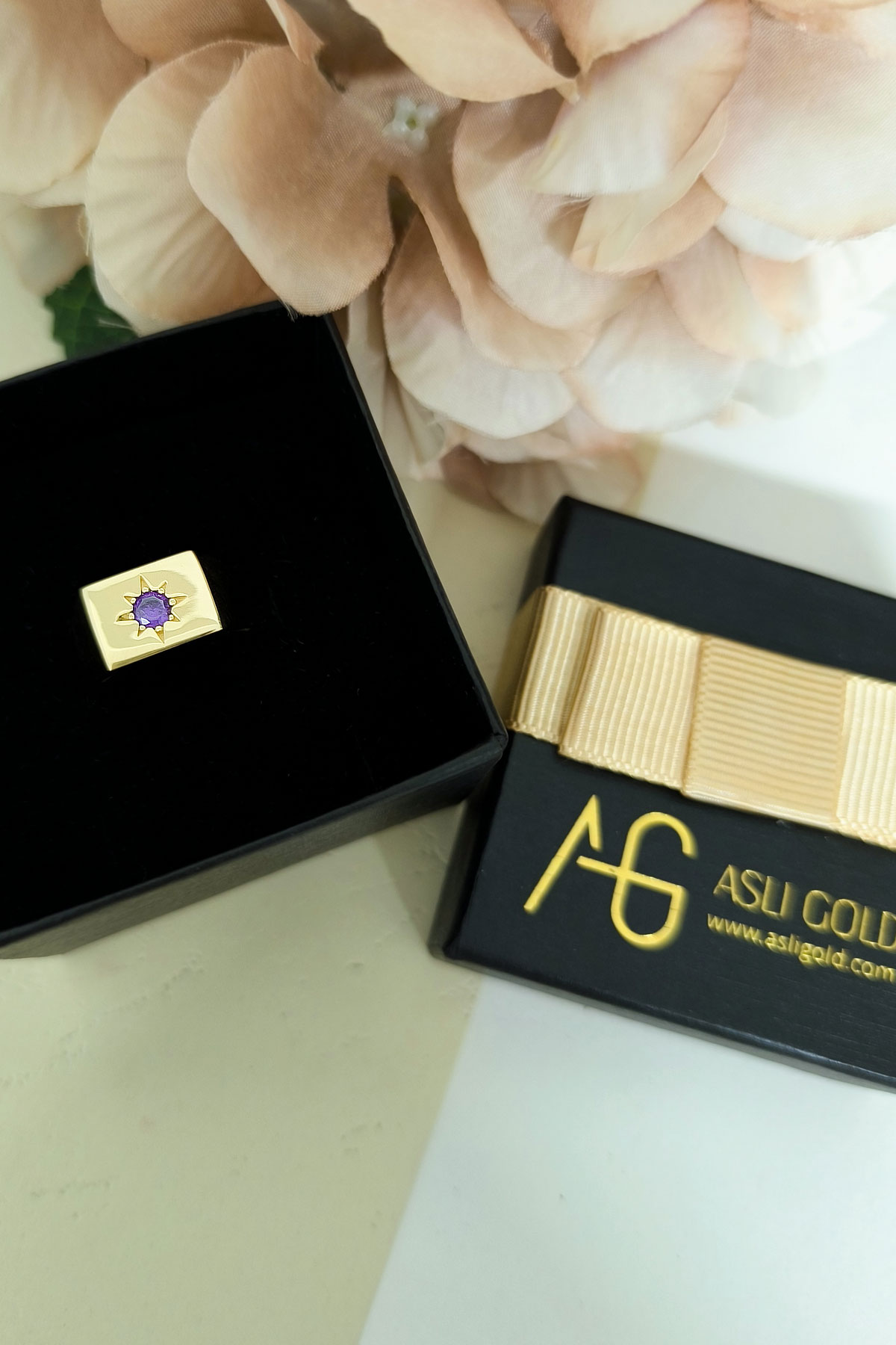 14 ayar sarı altın kare tasarımıyla günlük kullanıma uygun parmağınızda stilinize hava katacak 3.20 gram ağırlığında zirkon taşlı kadın yüzük.