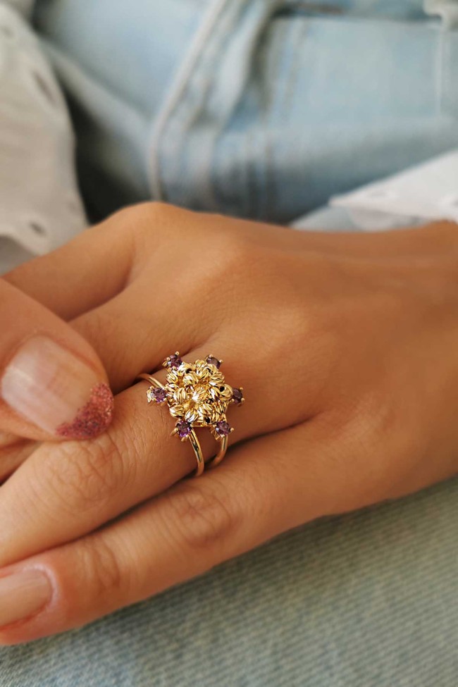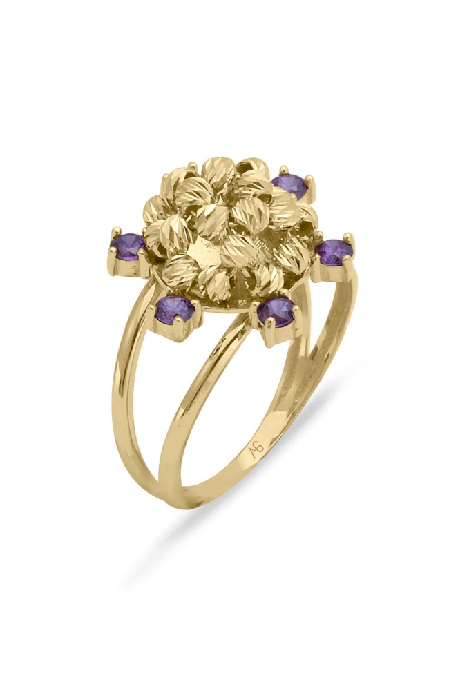 3.30 Gram Ağırlığında Ametist Taşlı Işıl Işıl Kartanesi Şık Tasarımıyla Göz Dolduran 14 Ayar Altın Dorika Toplu Yüzük.