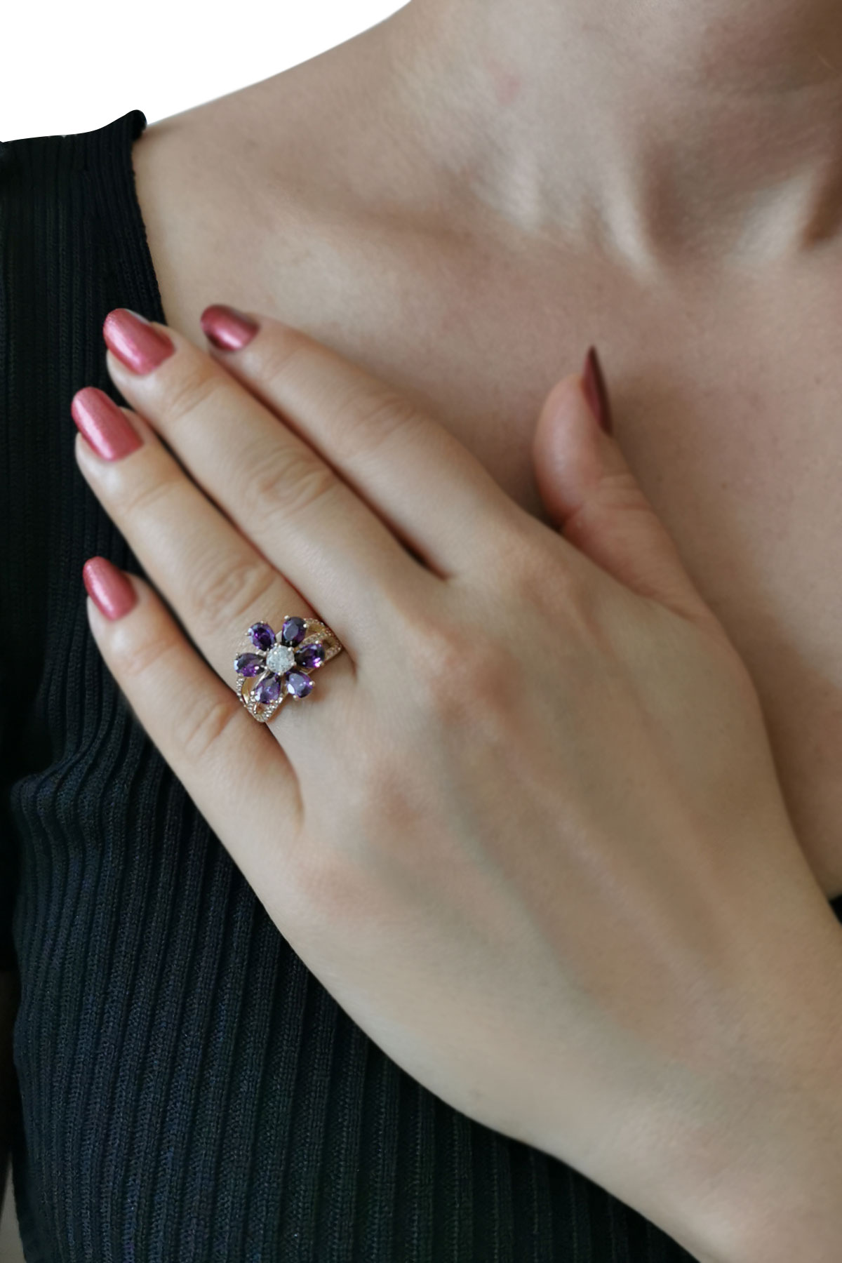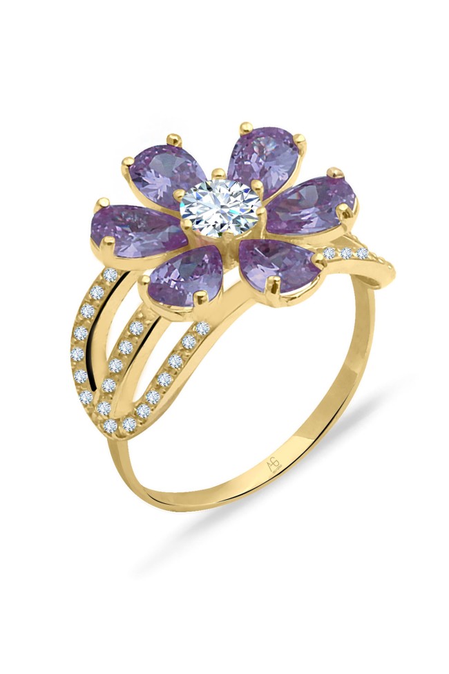 Kokusuyla büyüleyen saygı ve sevginin temsili, hayatta değer verdiğiniz sevdiklerinize verebileceğiniz anlam dolu 14 ayar altın ametist mor taşlı nergis çiçeği yüzük.