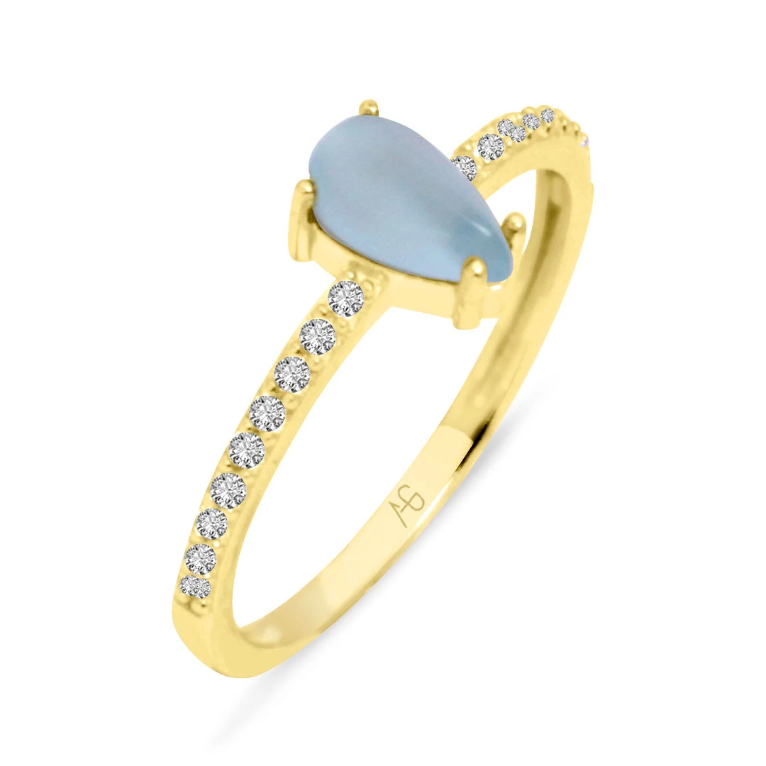 1.45 Gram Ağırlık Aqua Mavi Damla Taşlı 14 Ayar Sarı Altın