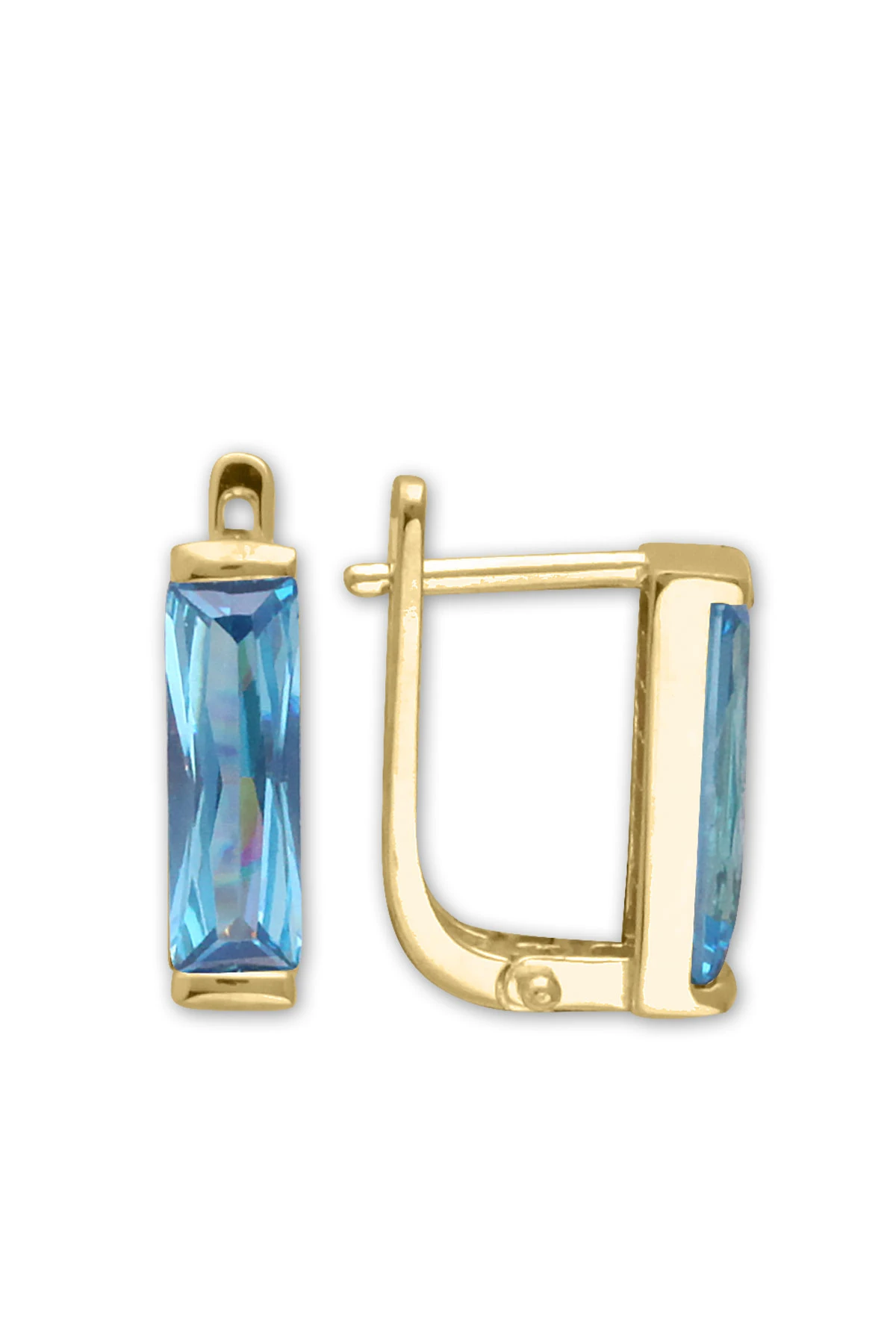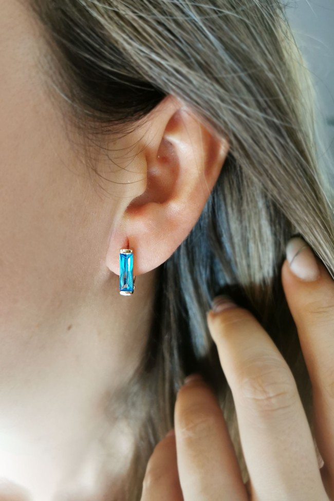 14 Ayar aqua marine taşlı ışıl ışıl spor ve şık duruşa sahip günlük kullanıma uygun 3.20 gram ağırlığında 1.5 Cm boyunda altın yeni sezon çubuk küpe.