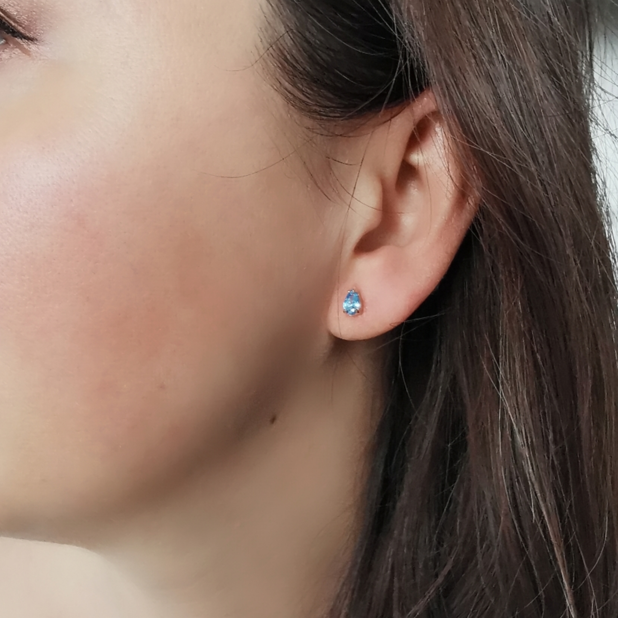 14 Ayar 1.05 gram ağırlığında minimal tasarımıyla gece gündüz kulağınızdan çıkarmak istemeyeceğiniz damla aquamarine taşlı altın küpe.