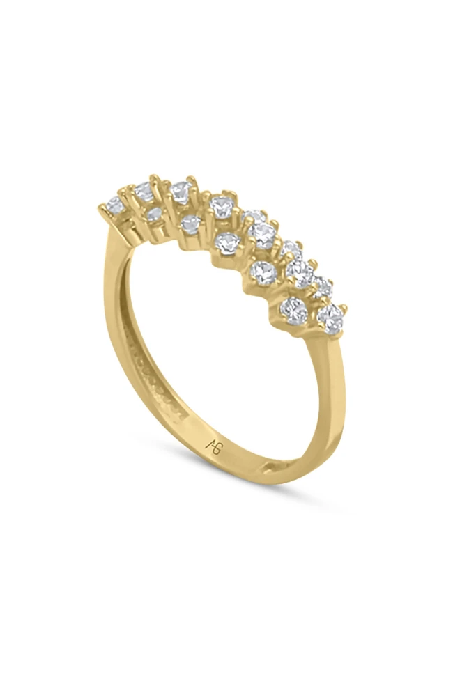 14 Ayar modern, şık ve ışıl ışıl tasarımı ile şahane bir duruşa sahip altın ve zirkon taşların uyumuyla günlük kullanıma uygun 2.30 gram ağırlığında taşlı altın yüzük.