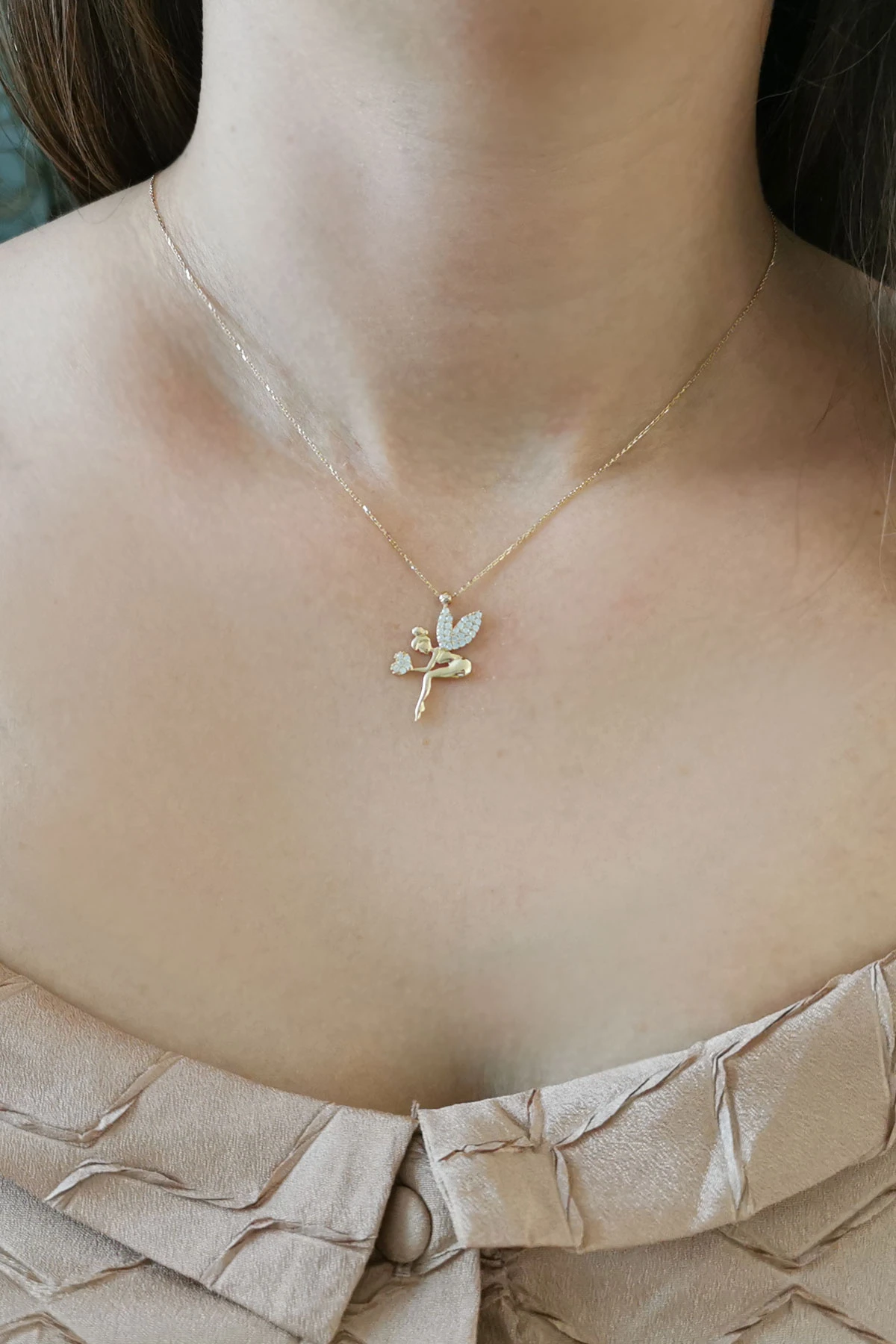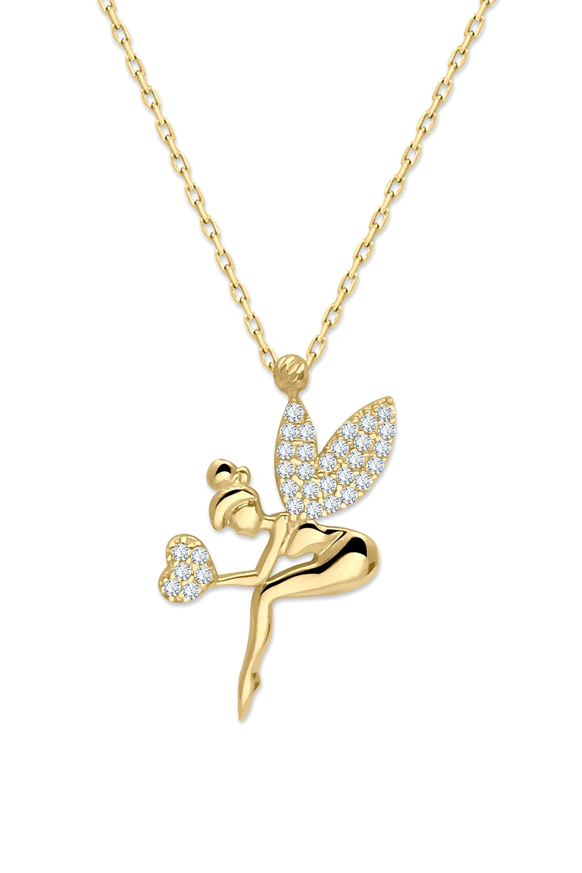 2.3 Cm Boyunda Kendinden 45 Cm Zincirli 14 Ayar Zirkon Taşlı Minimal Tasarıma Sahip Işıl Işıl Günlük Kullanıma Uygun 2.05 Gr. Ağırlığında Altın Aşk Perisi Kolye.