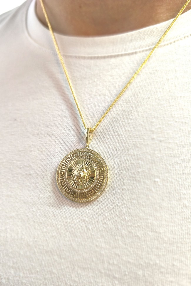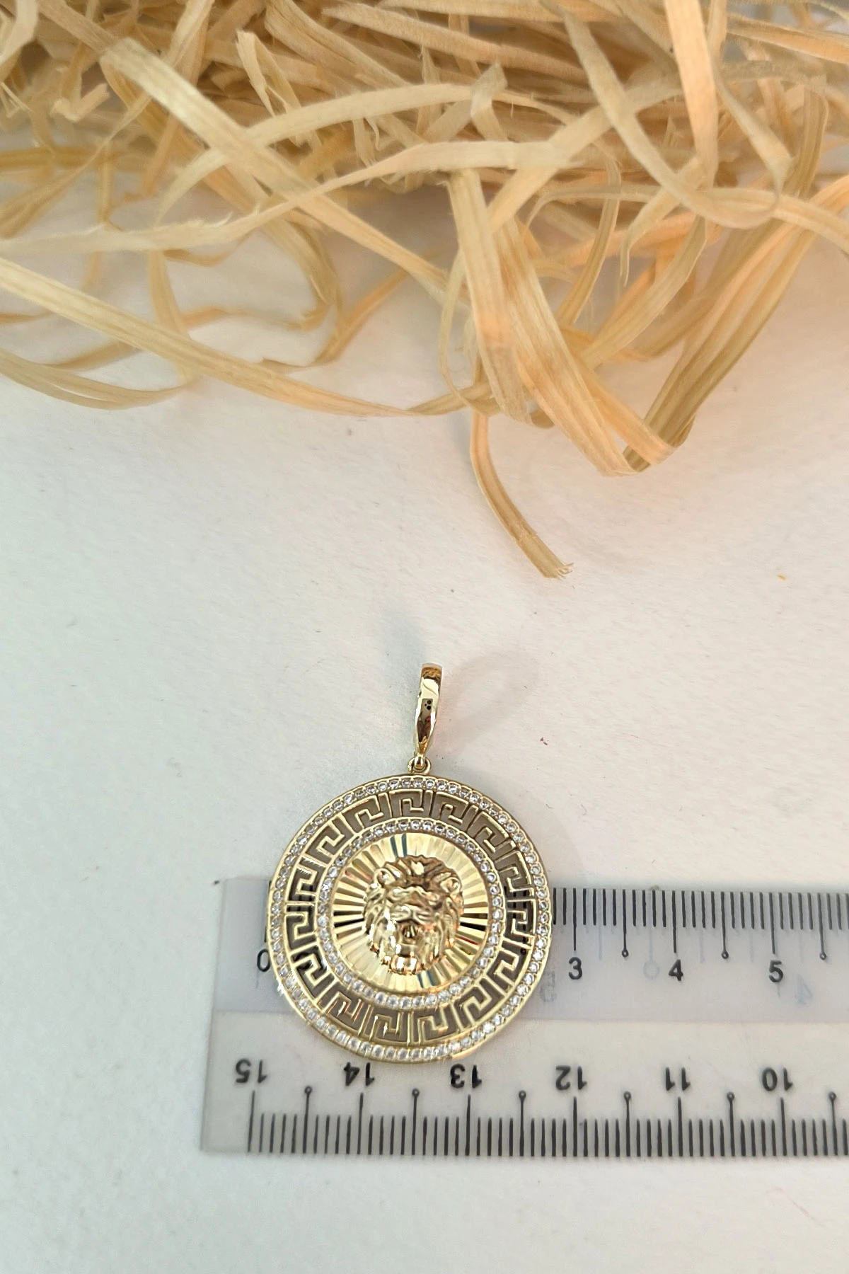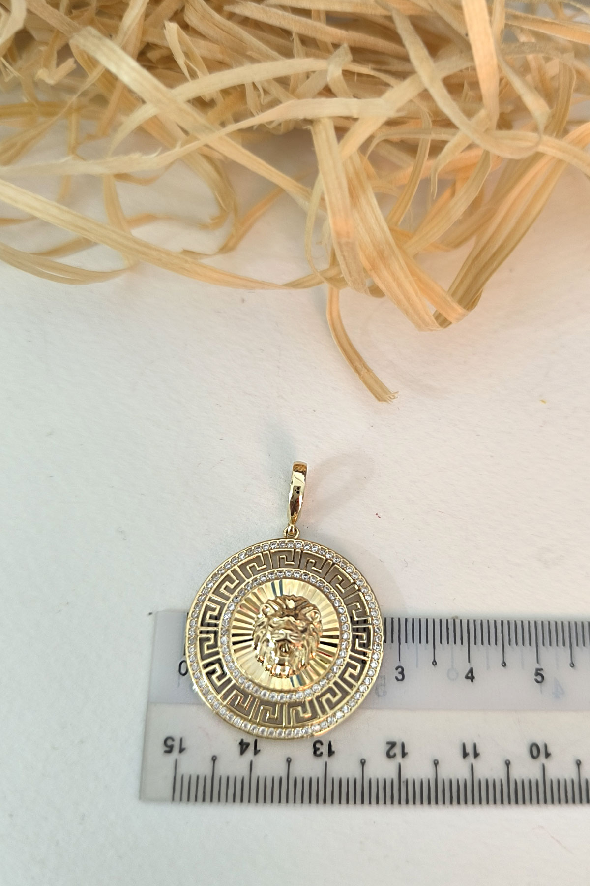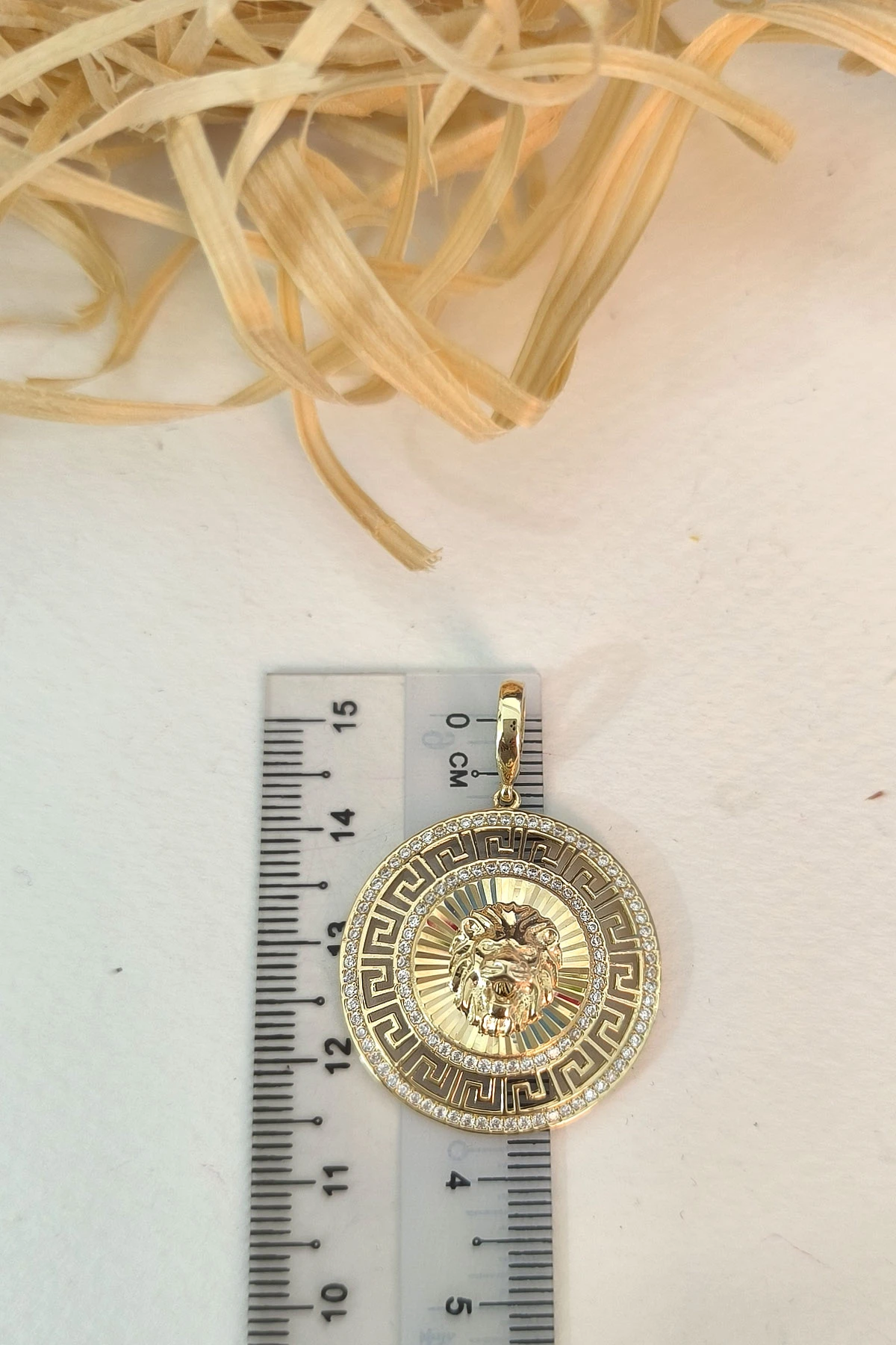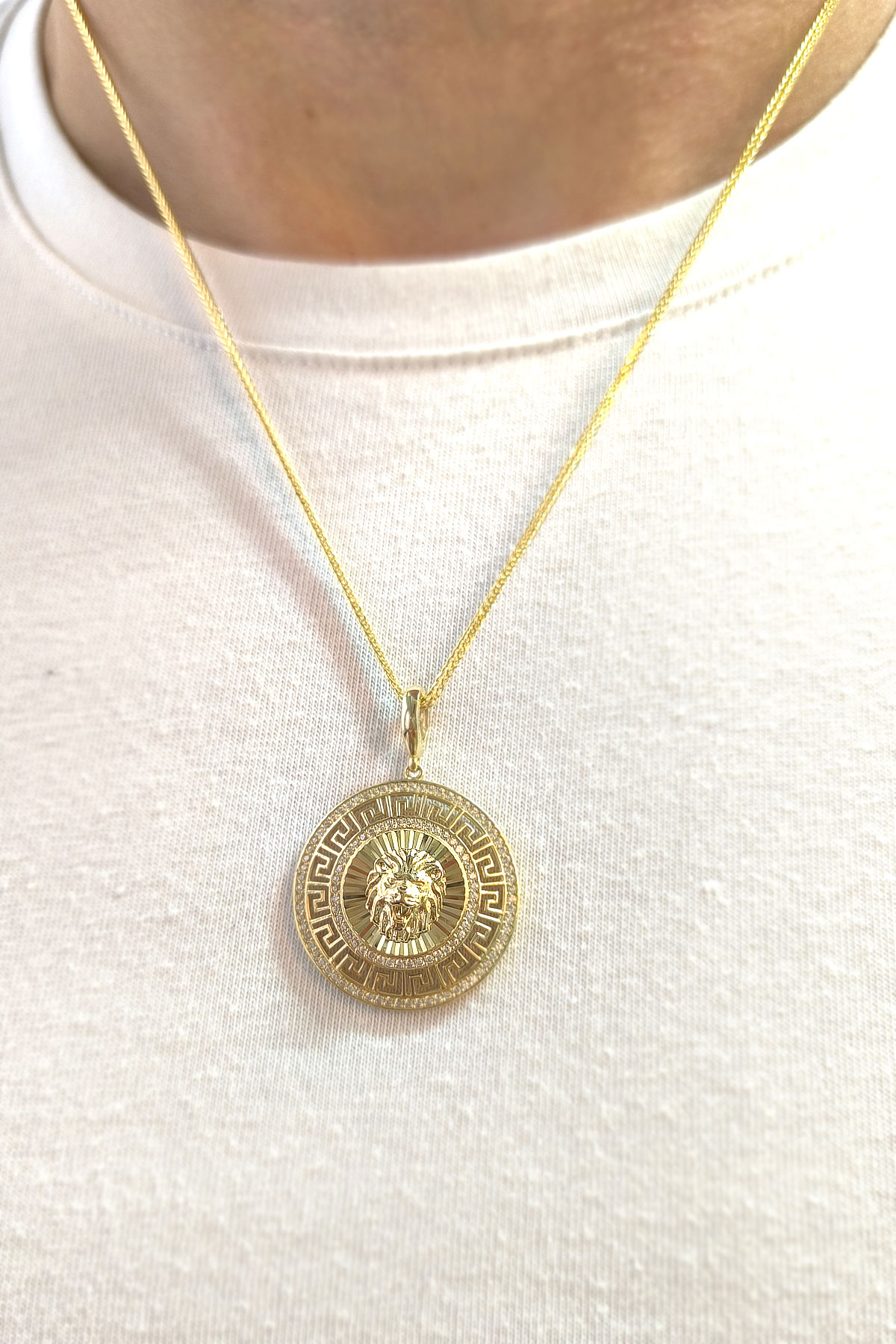 Modern Şehirli Tarz 60 Cm Boyunda Spiga Zinciri İle Oldukça Şık Bir Modele Sahip 8.70 Gr. Ağırlığında 14 Ayar Altın Beyaz Zirkon Taşlı Aslan Başı Erkek Kolye.