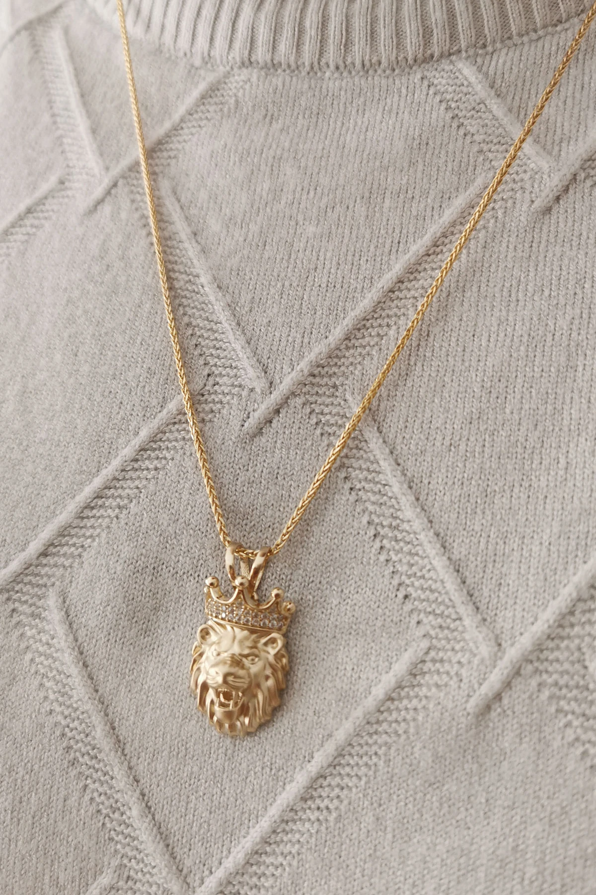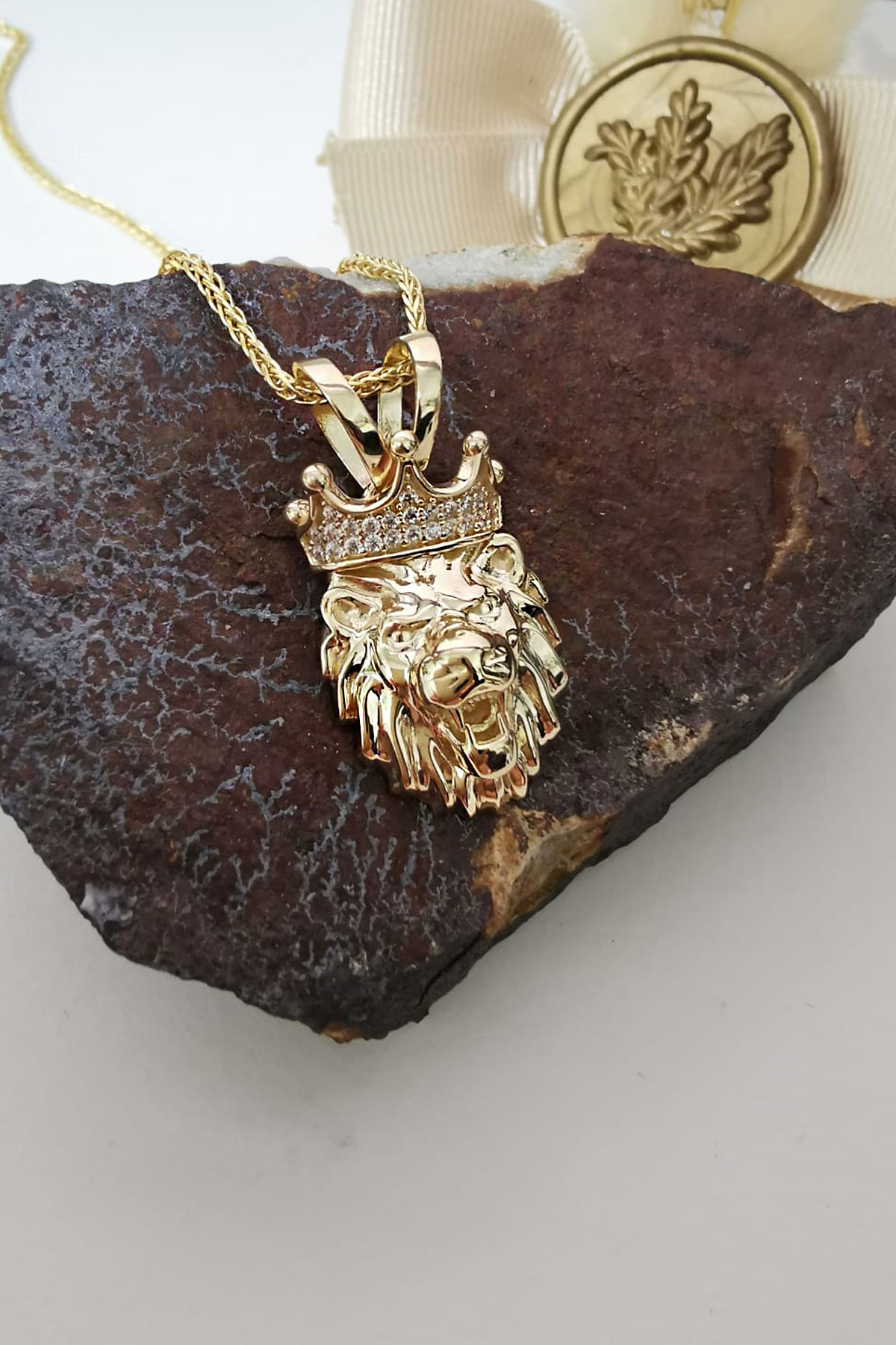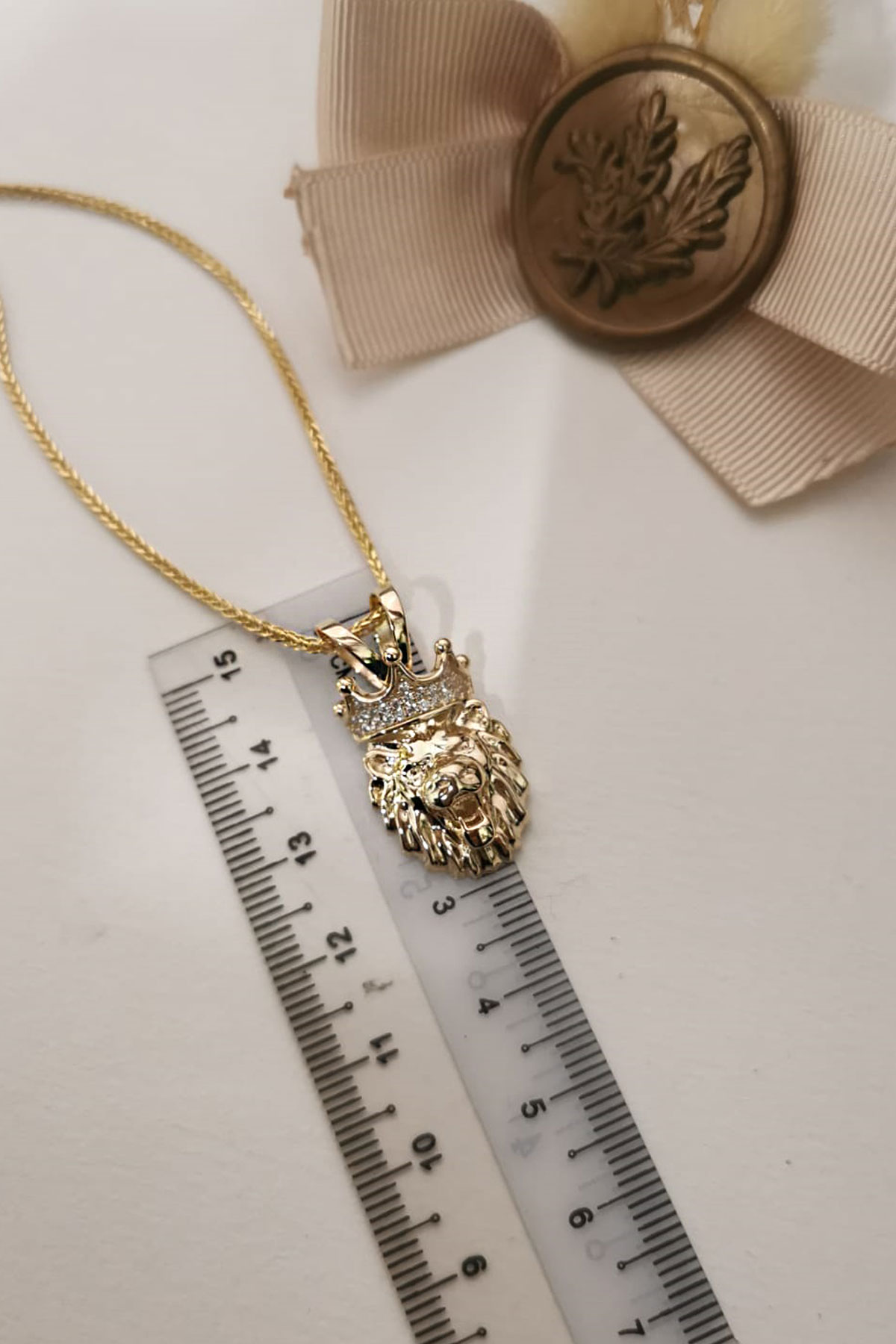 Modern Şehirli Tarz 55 Cm Boyunda Spiga Zinciri İle Oldukça Şık Bir Modele Sahip 6.90 Gr. Ağırlığında 14 Ayar Altın Aslan Erkek Kolye.