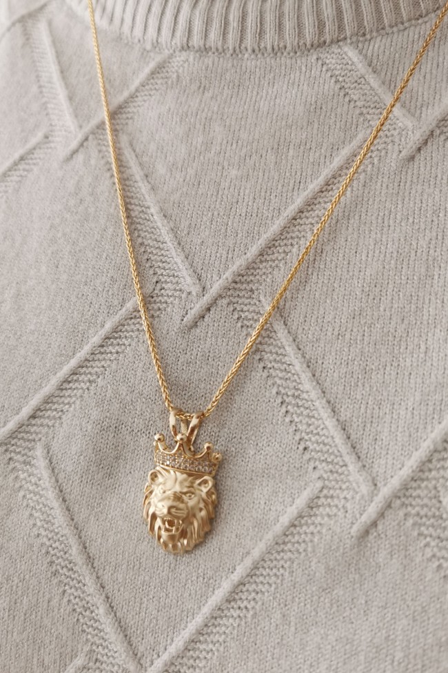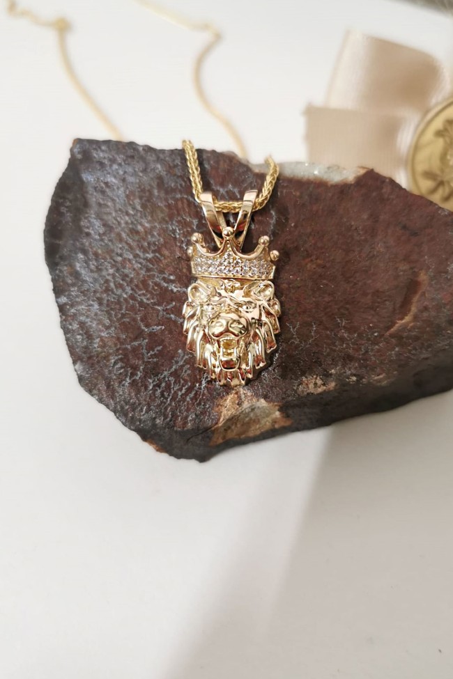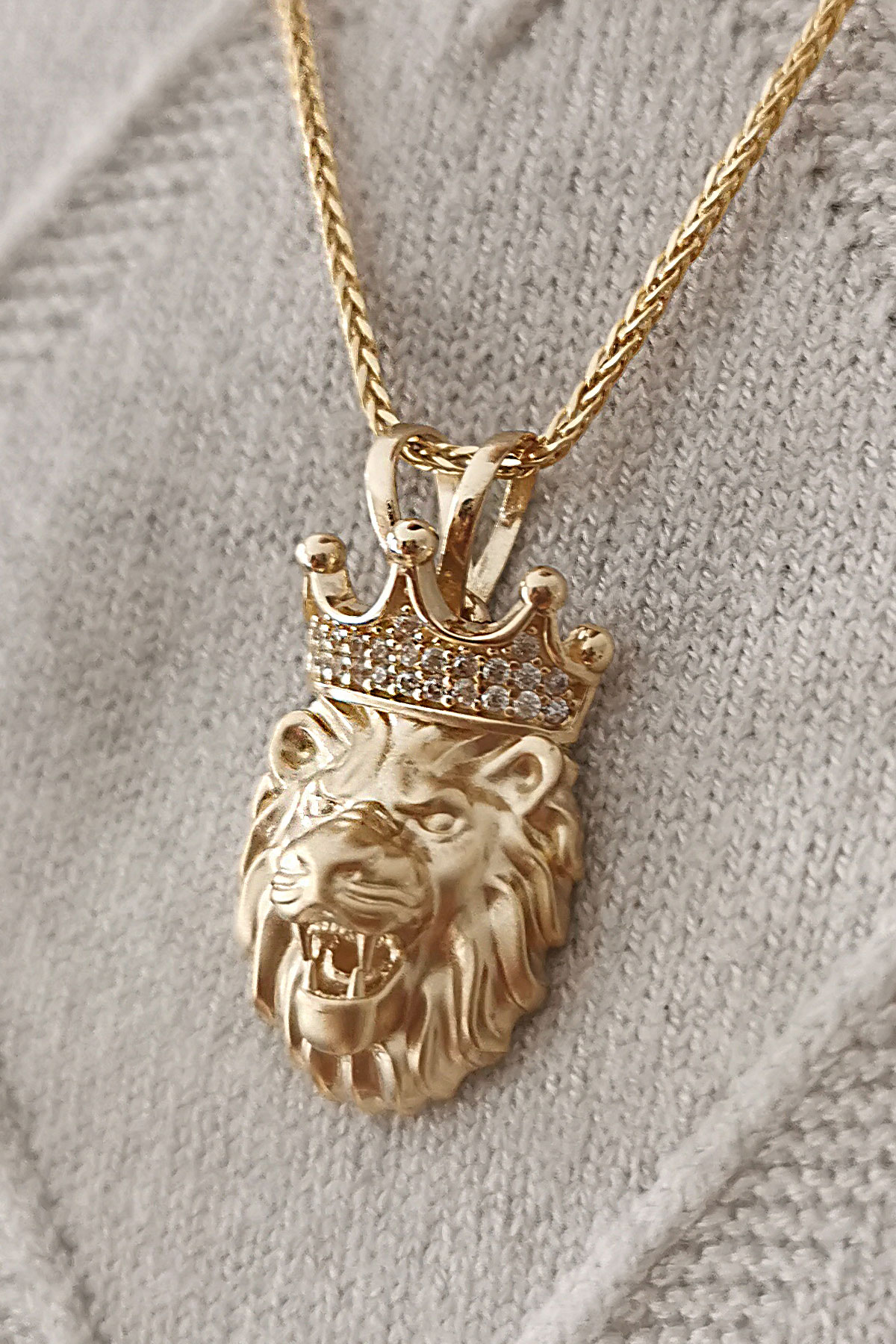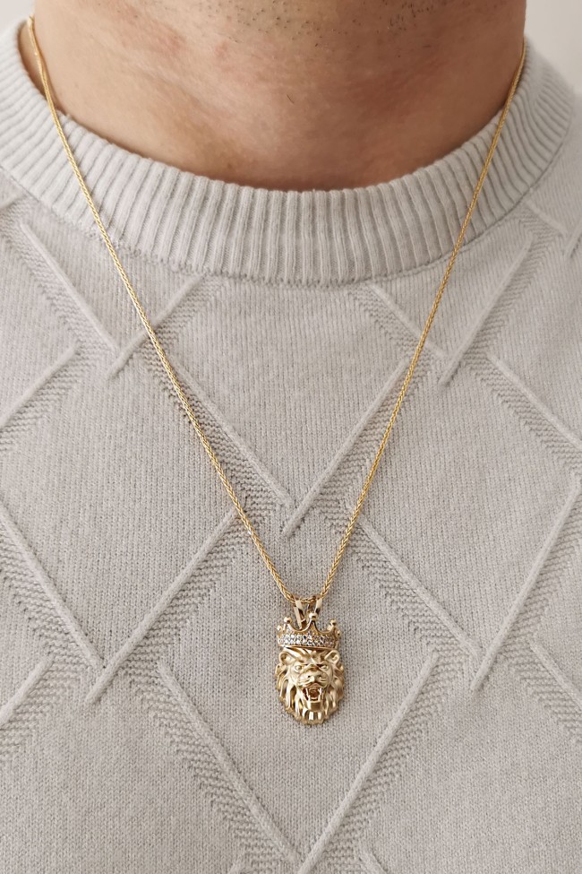 Modern Şehirli Tarz 55 Cm Boyunda Spiga Zinciri İle Oldukça Şık Bir Modele Sahip 6.90 Gr. Ağırlığında 14 Ayar Altın Aslan Erkek Kolye.