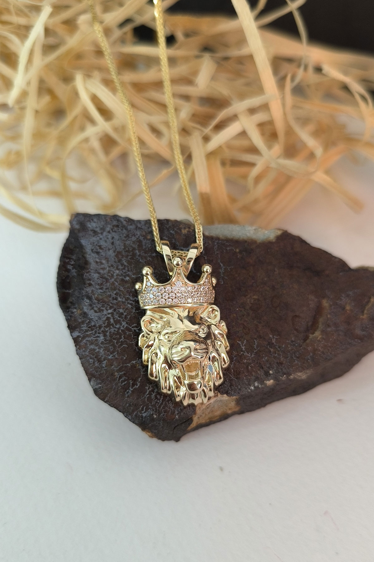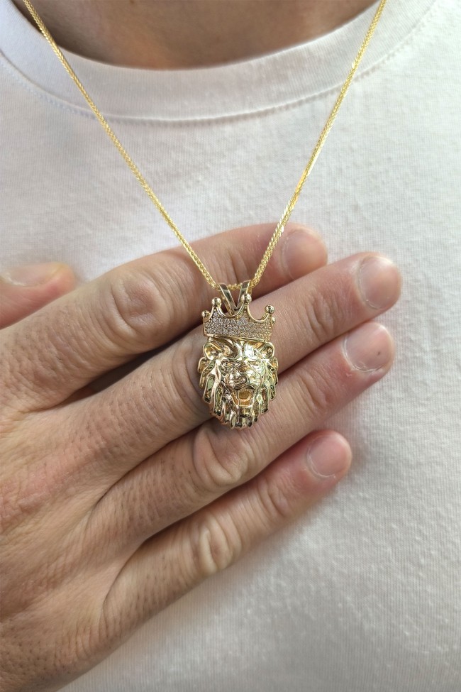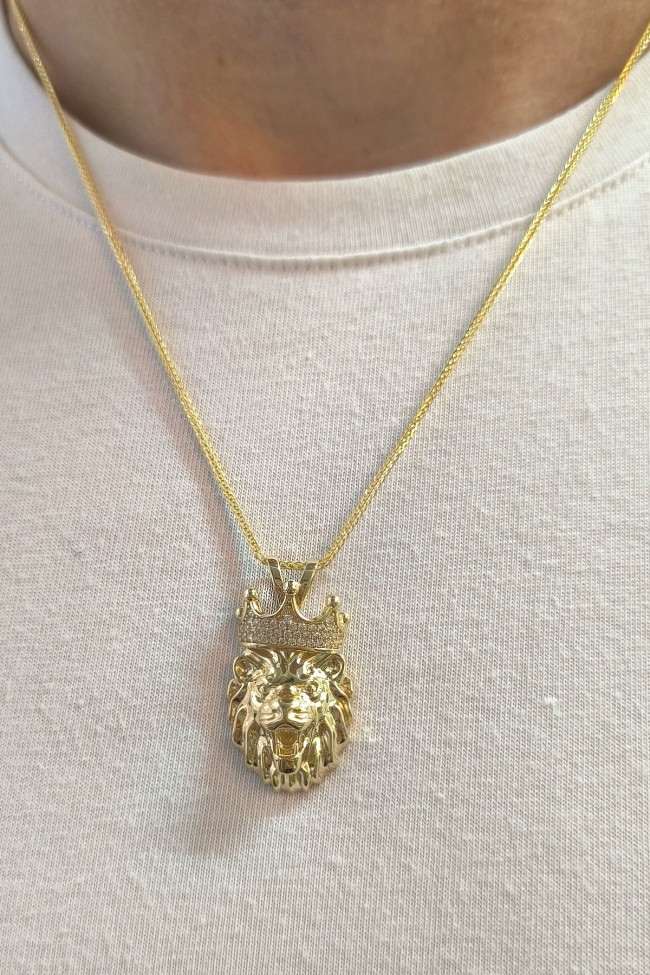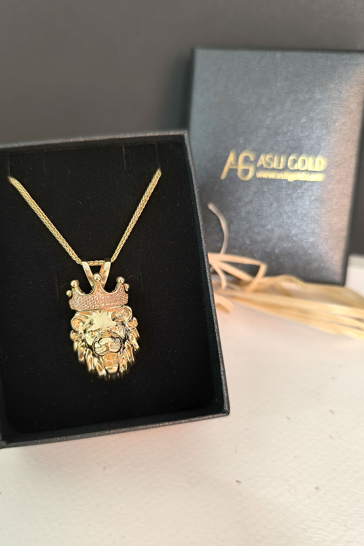 Modern Şehirli Tarz 60 Cm Boyunda Spiga Zinciri İle Oldukça Şık Bir Modele Sahip 10.50 Gr. Ağırlığında 14 Ayar Altın Aslan Erkek Kolye.