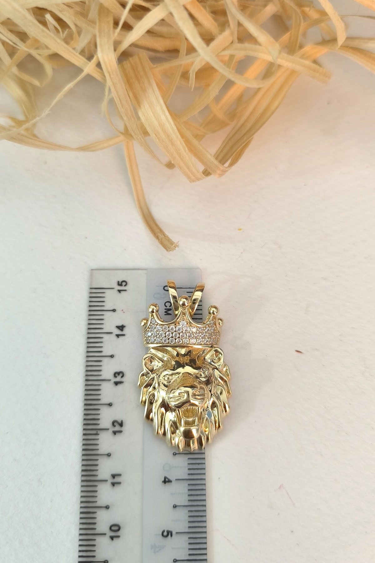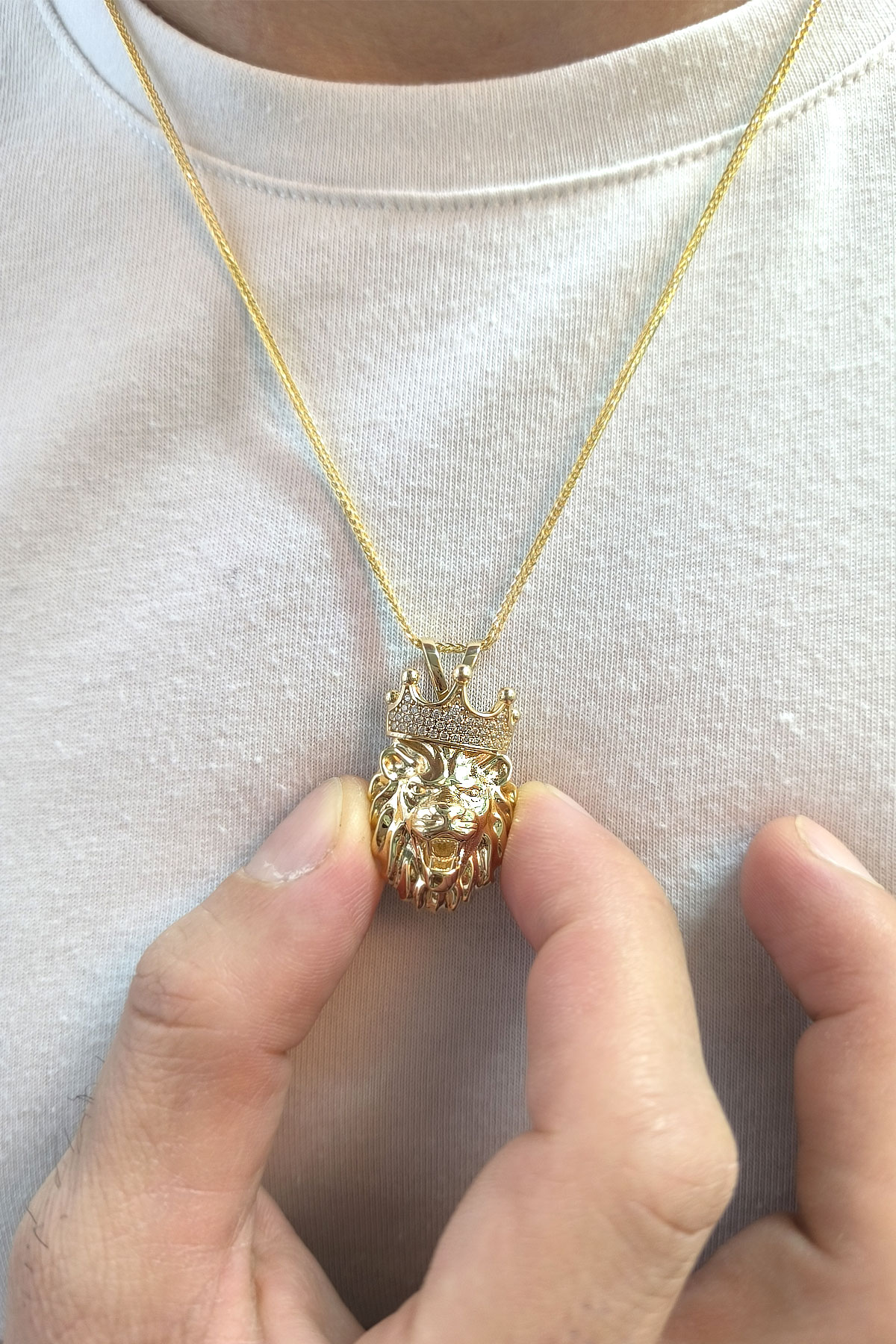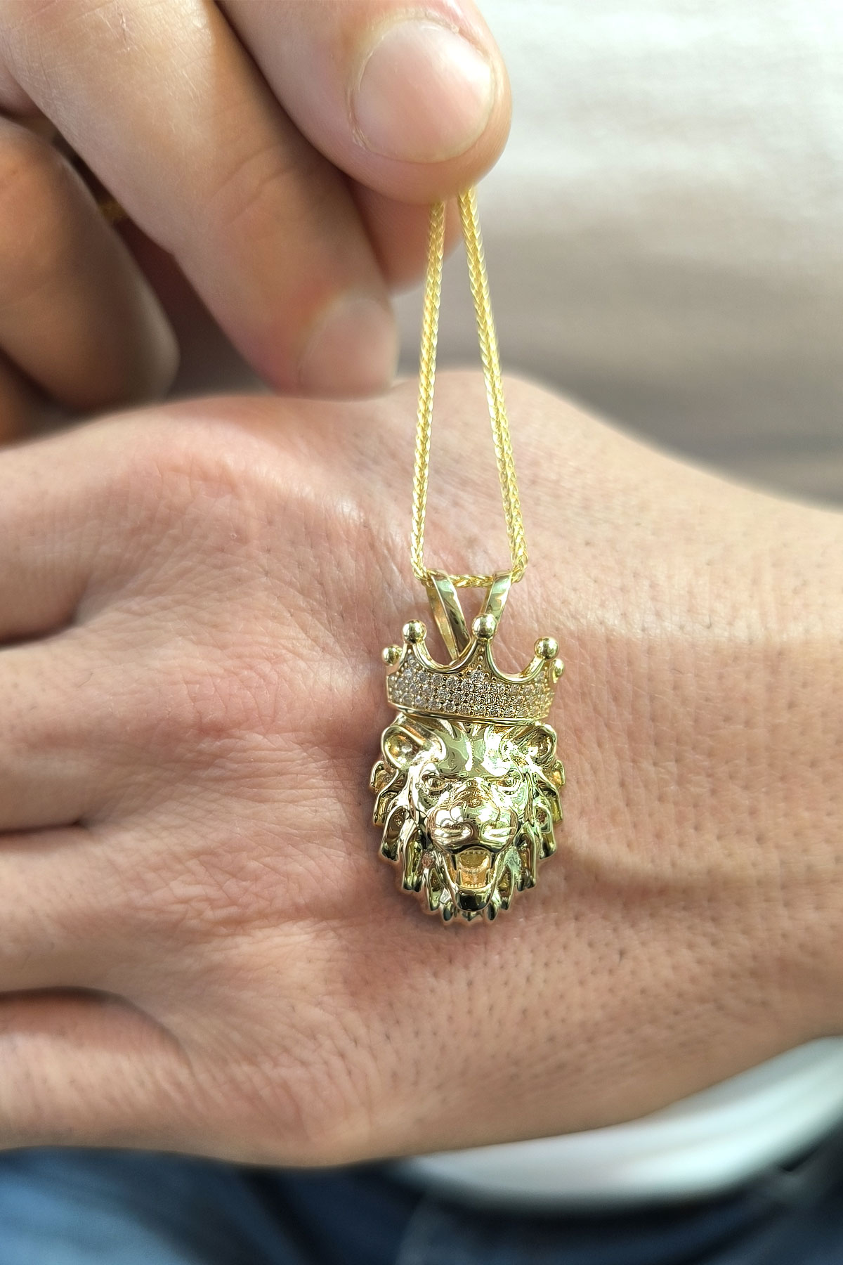 Modern Şehirli Tarz 60 Cm Boyunda Spiga Zinciri İle Oldukça Şık Bir Modele Sahip 10.50 Gr. Ağırlığında 14 Ayar Altın Aslan Erkek Kolye.