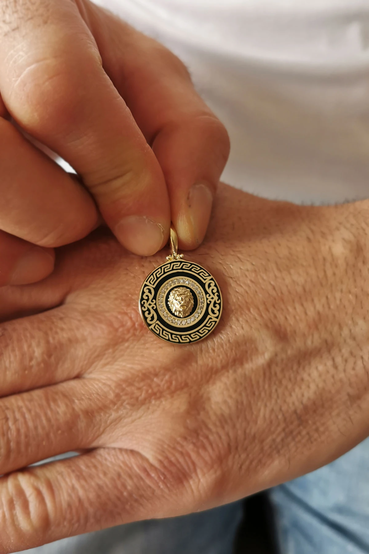 5.85 gr. 3 cm boyutunda 14 ayar altın mineli aslan detaylı erkek kolye ucu .