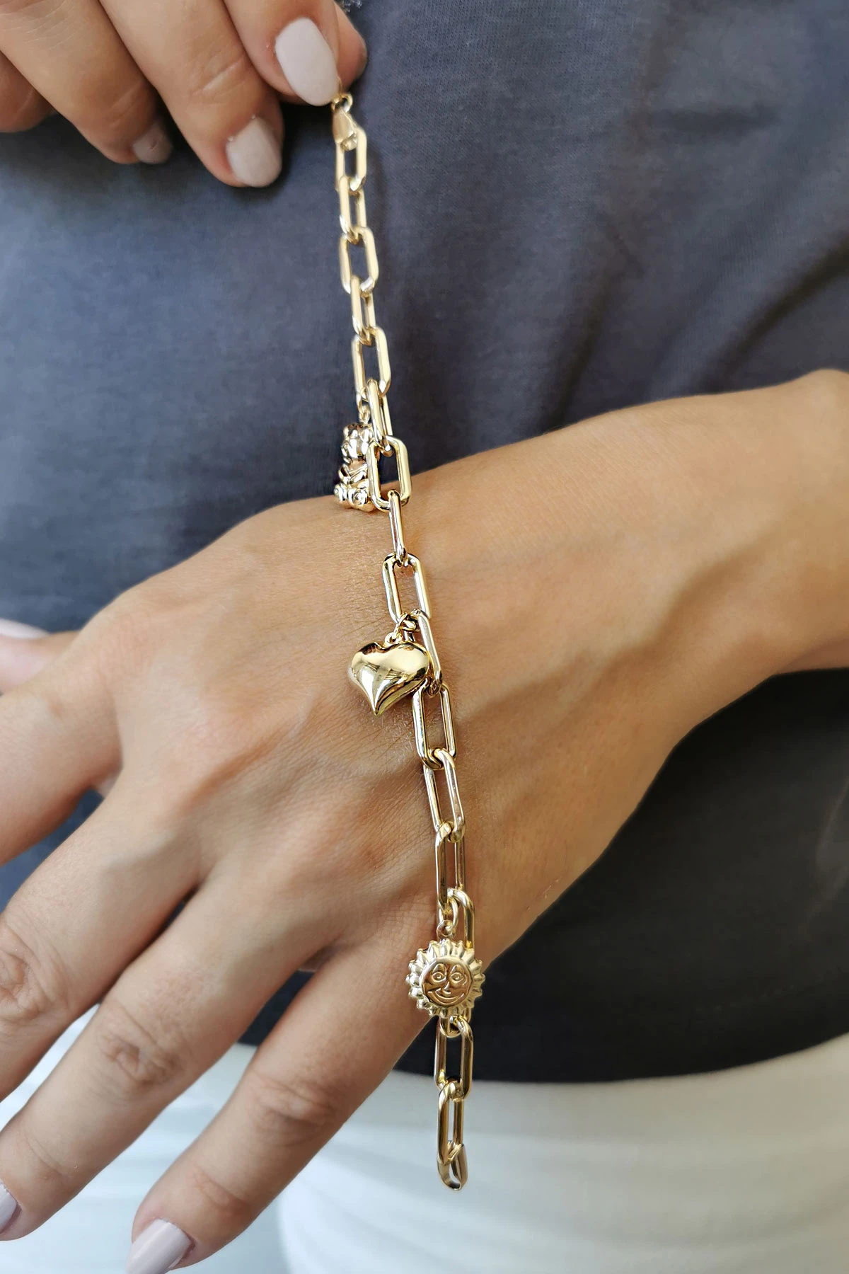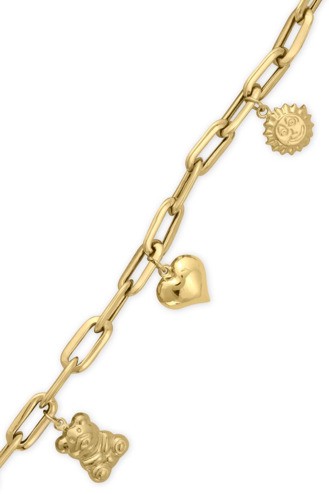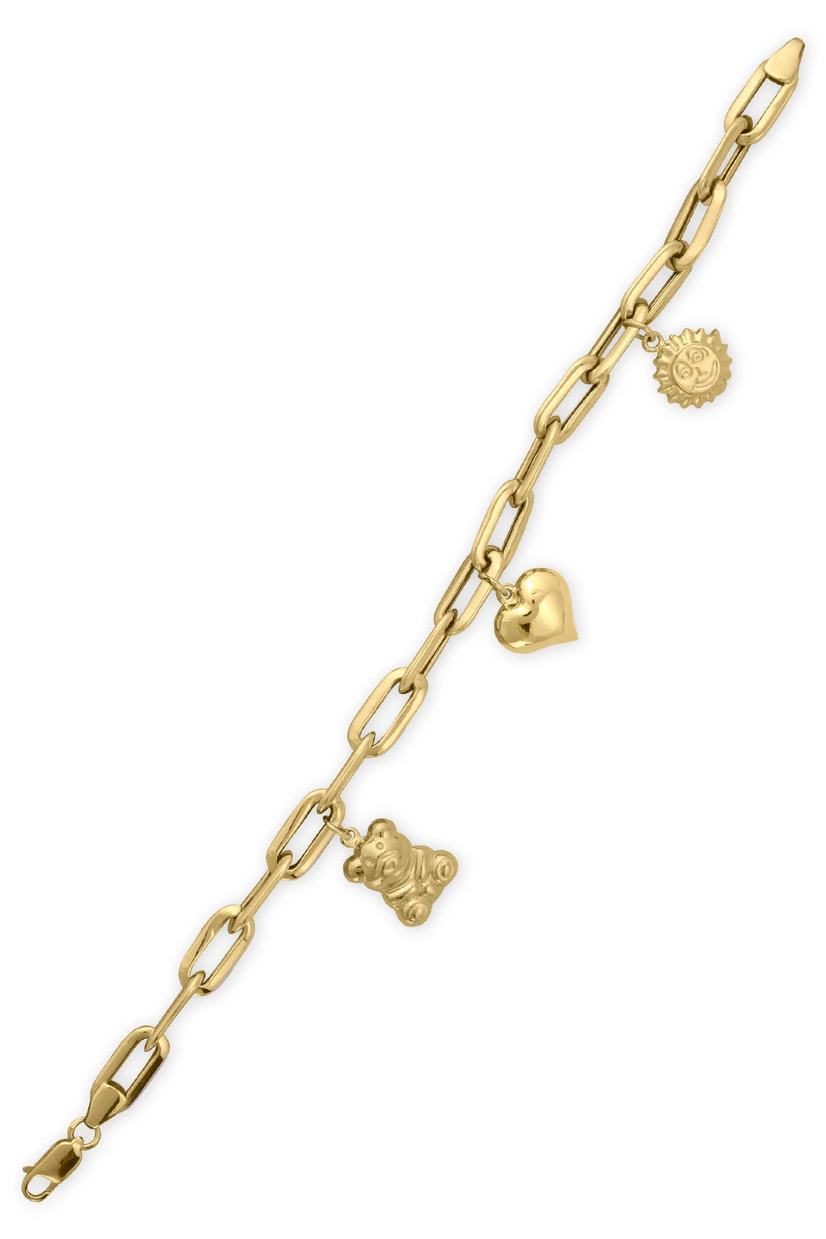14 Ayar Spor Tüm Giyim Tarzlarınıza Hava Katacak 8.40 Gr Kalp, Ayıcık Ve Güneş Detaylı Günlük Kullanıma Uygun Ataç Model Charm Bileklik.