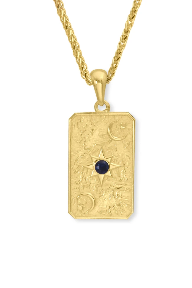 14 Ayar 3.85 gram ağırlığında 45 cm boyunda spiga ışıl ışıl zinciriyle tüm gün gömlek ve basic tişörlerinizle severek kullanacağınız, spor giyim tarzınıza da muhteşem uyum sağlayacak 2.5 cm otantik tasarım ay ve yıldız detaylı otantik dikdörtgen lacivert taş detaylı kolye.