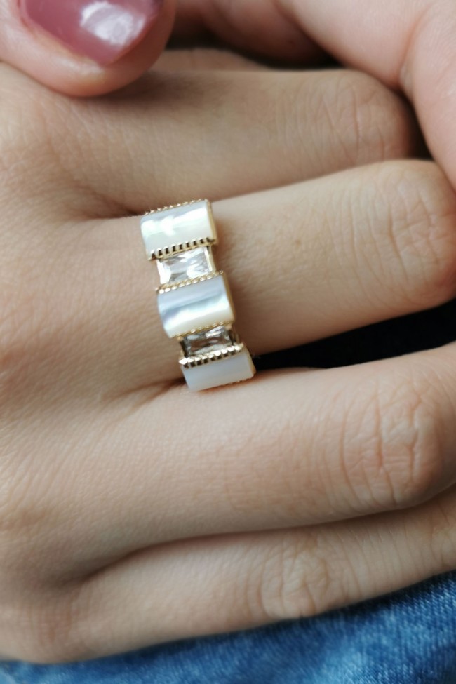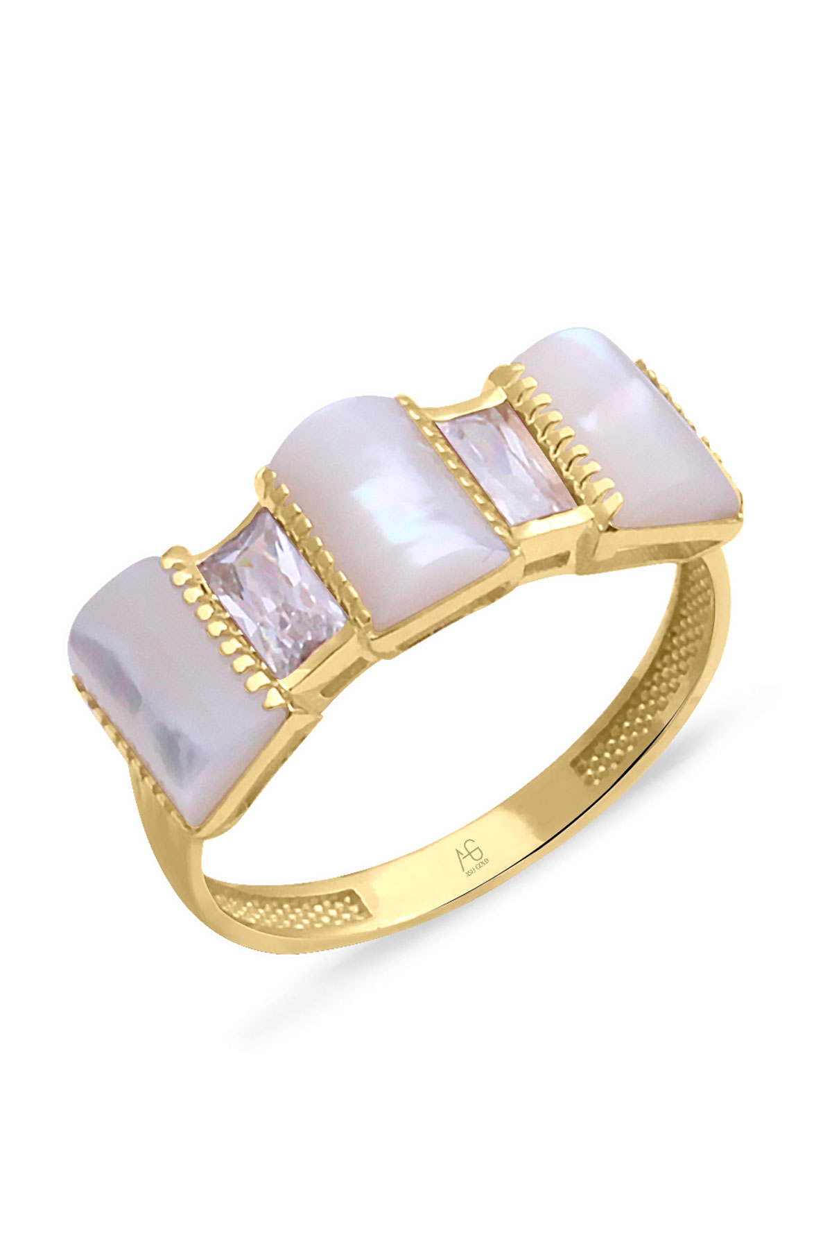 14 ayar sedef ve zirkon baget taşlarla kombin edilmiş günlük kullanıma uygun stilinize hava katacak 2.30 gram ağırlığında altın yüzük.