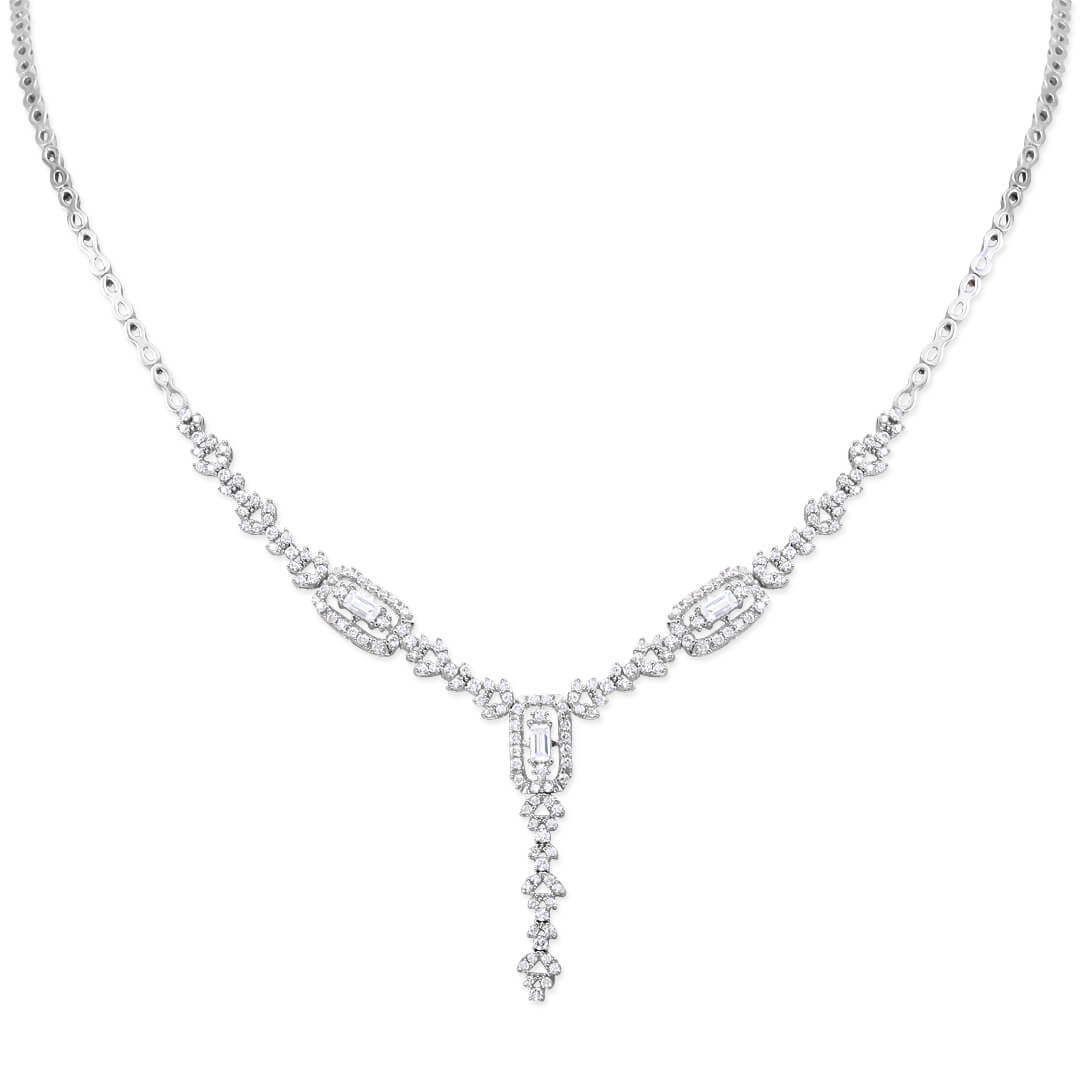 14 Ayar Işıl Işıl Zarif Bir Modele Sahip Beyaz Altın Baget Taş Detaylı Işık Seli Zirkon Taşlı Gerdanlık.