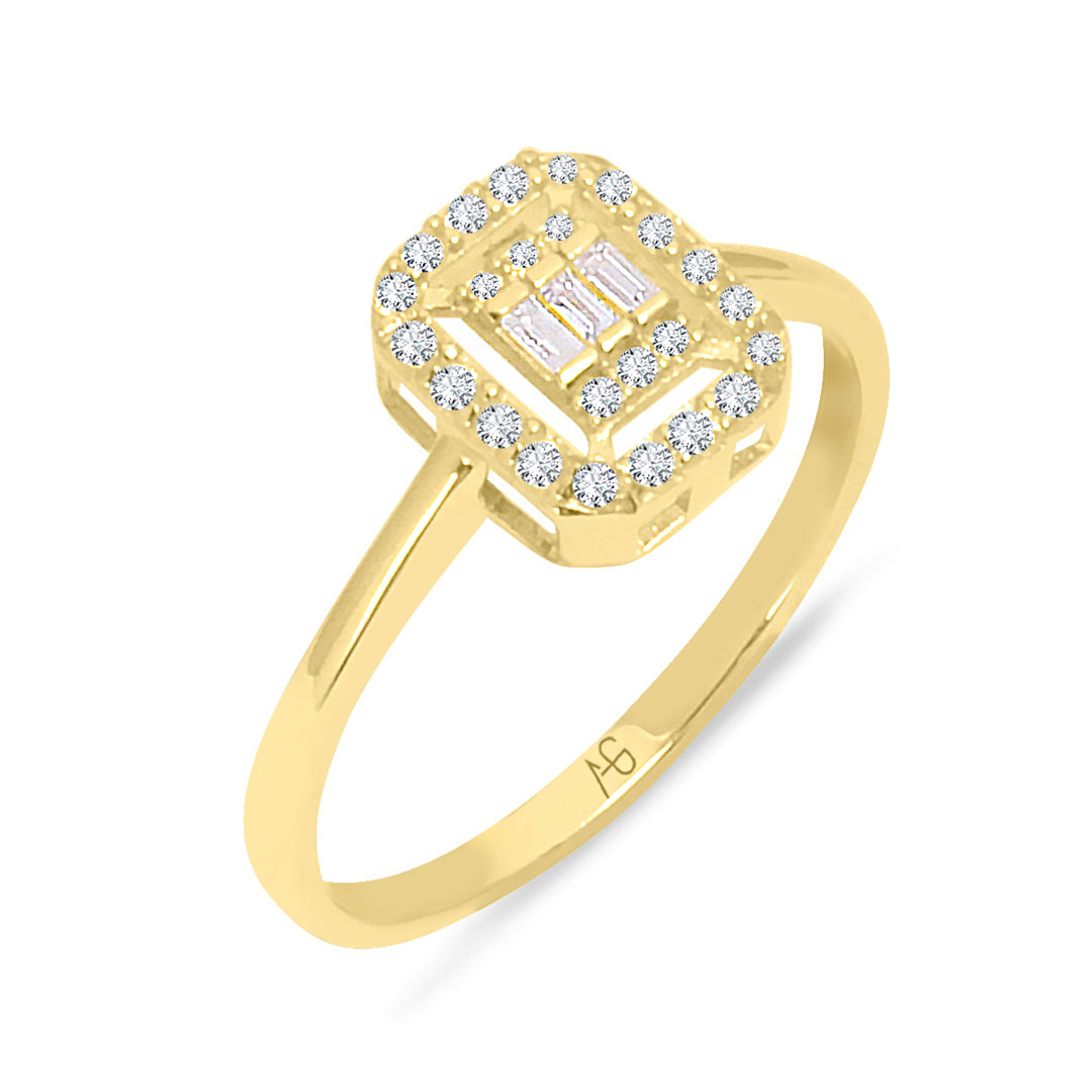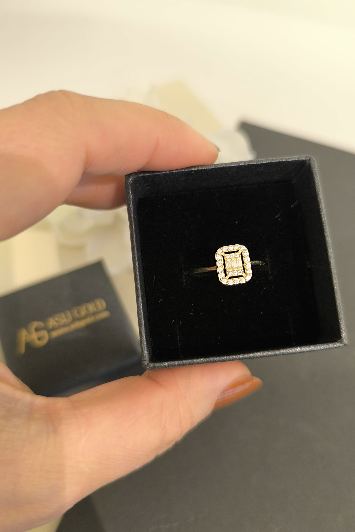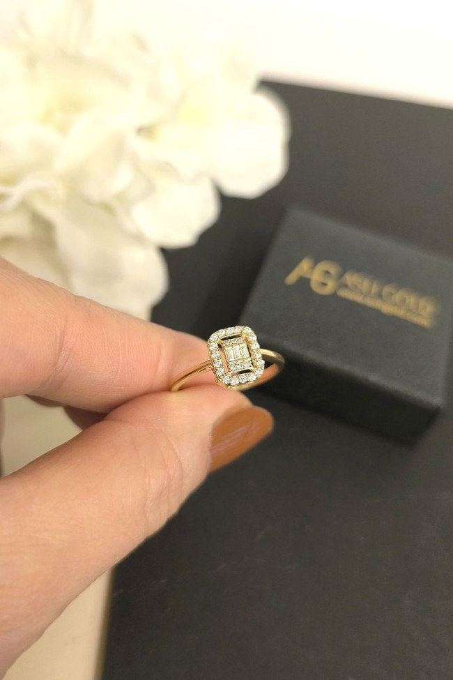 14 Ayar 1.95 gram ağırlığında oldukça şık tasarımıyla gece gündüz parmağınızdan çıkarmak istemeyeceğiniz baget ve yuvarlak zirkon taşlı altın yüzük.