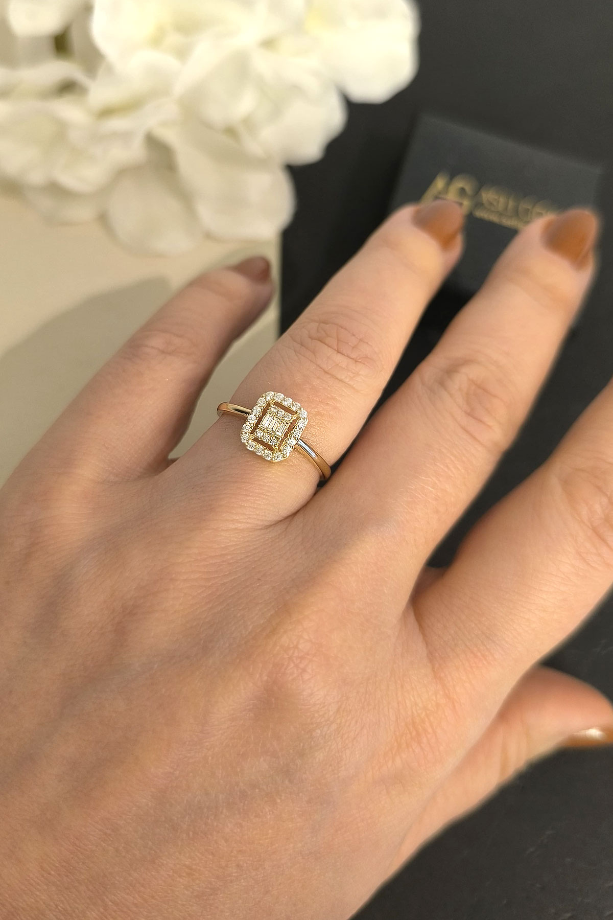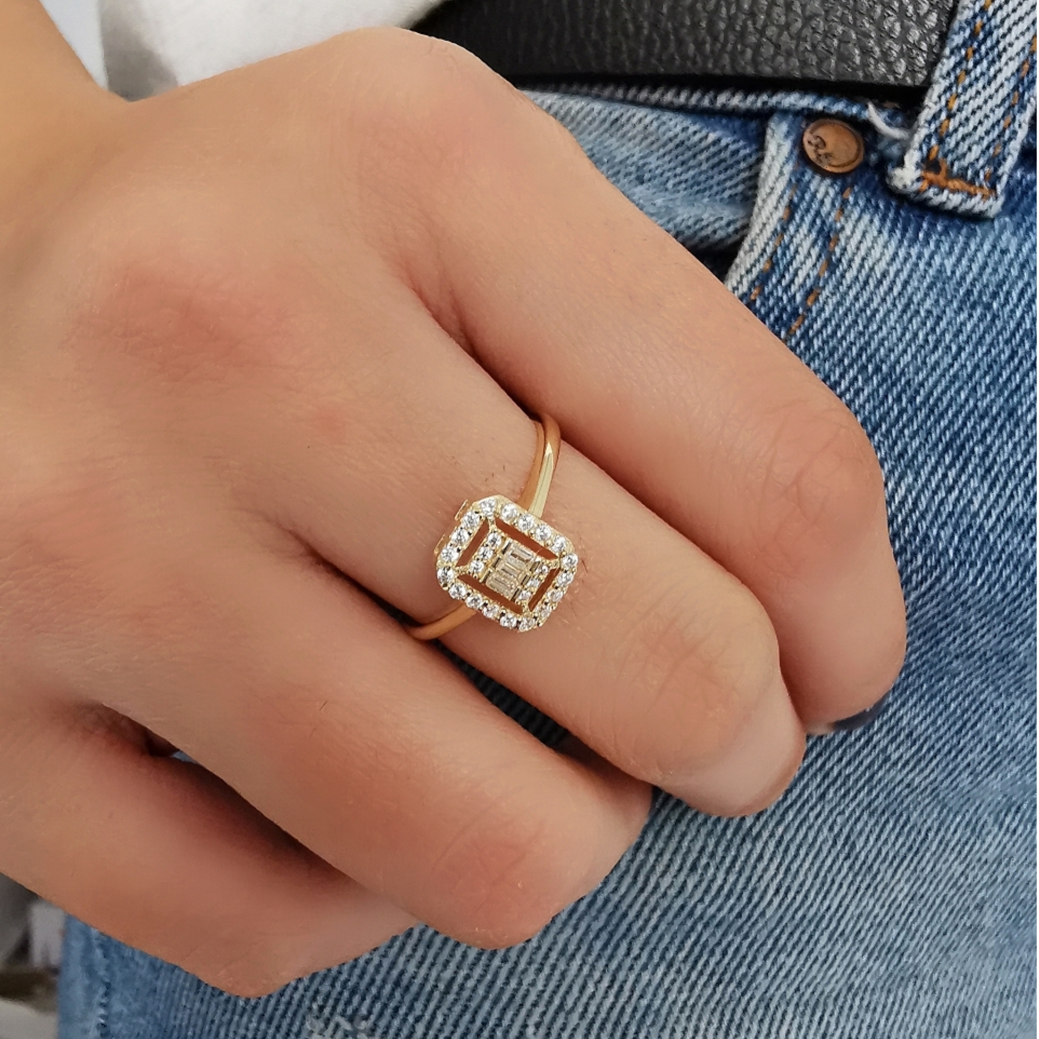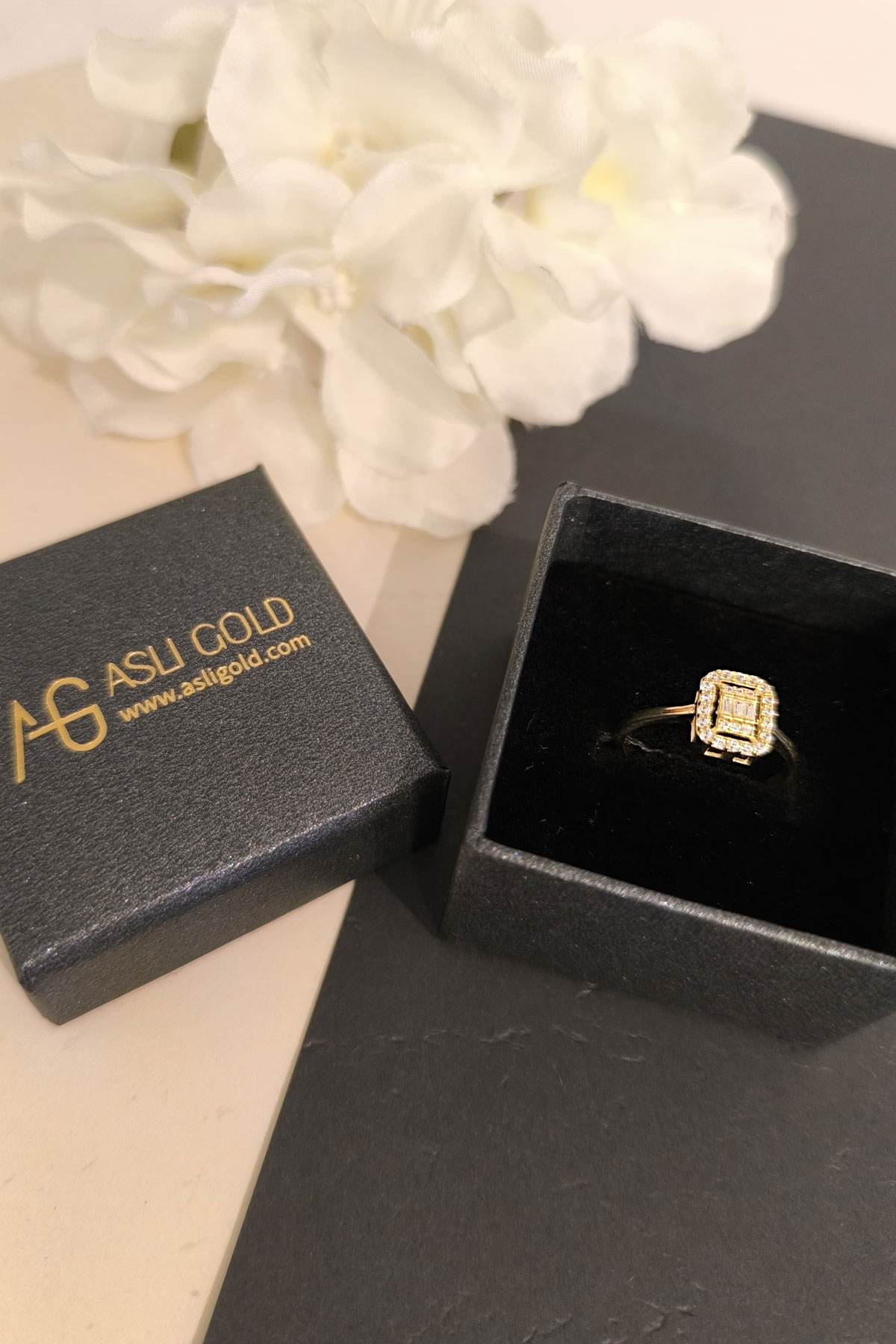 14 Ayar 1.95 gram ağırlığında oldukça şık tasarımıyla gece gündüz parmağınızdan çıkarmak istemeyeceğiniz baget ve yuvarlak zirkon taşlı altın yüzük.