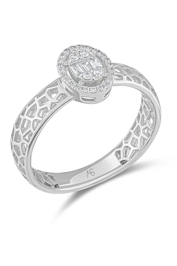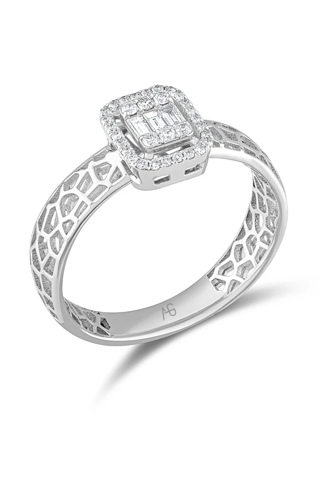 0.21 Ct. F/SI taş detaylarına sahip 14 ayar beyaz altın füzyon kol pırlanta baget yüzük.