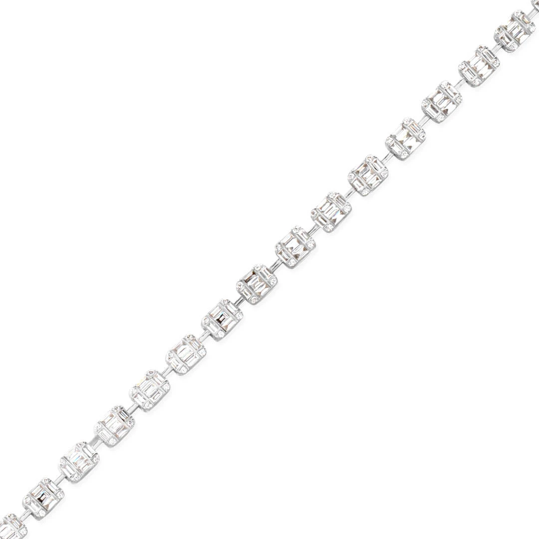 Sade ve zarif 18 ayar beyaz altın 1.93 H-VS2 kalite baget taşlarıyla ışıltısına her zaman hayran bırakan günlük olarak da kullanabileceğiniz ışık seli pırlanta bileklik.