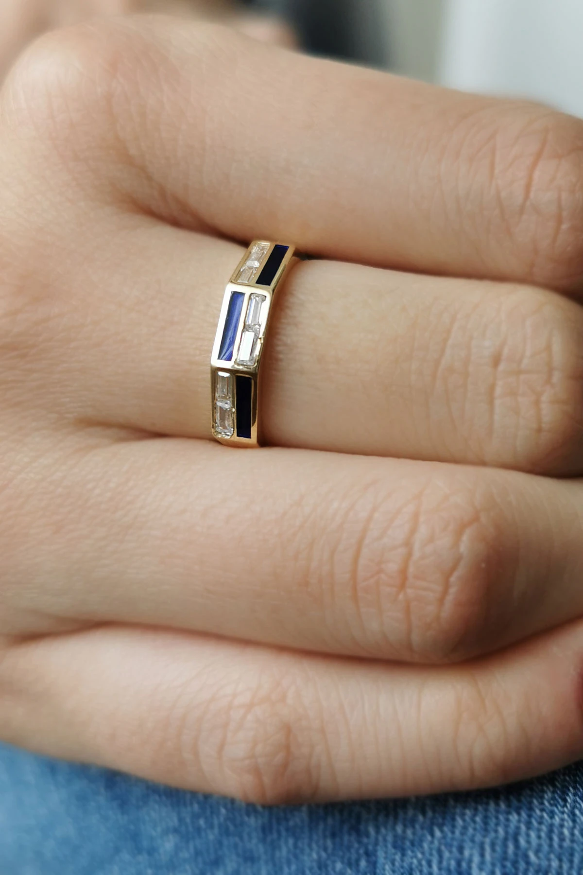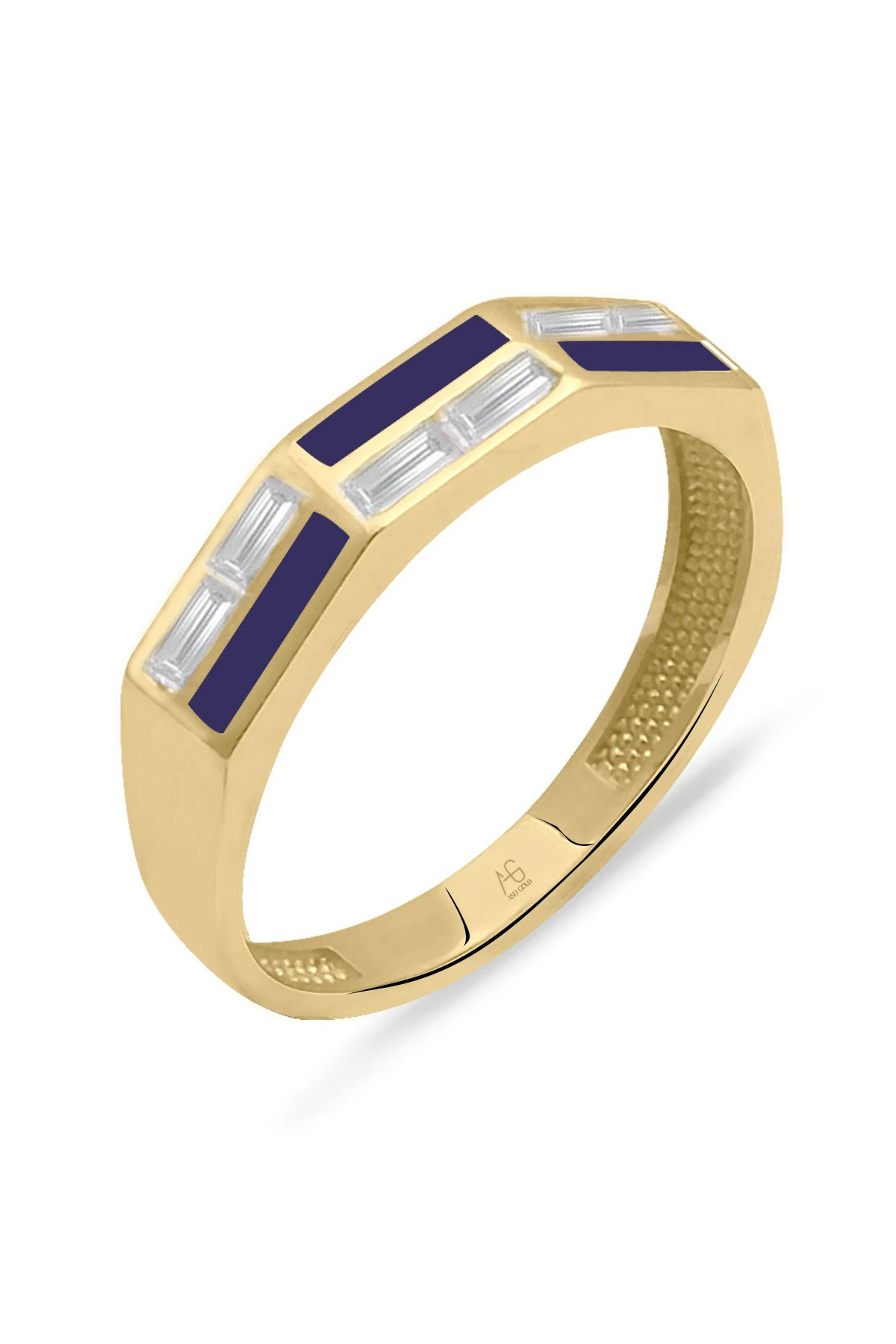 14 ayar lacivert mineli baget taş detaylı günlük kullanıma uygun stilinize hava katacak 1.70 gram ağırlığında altın köşegen yüzük.