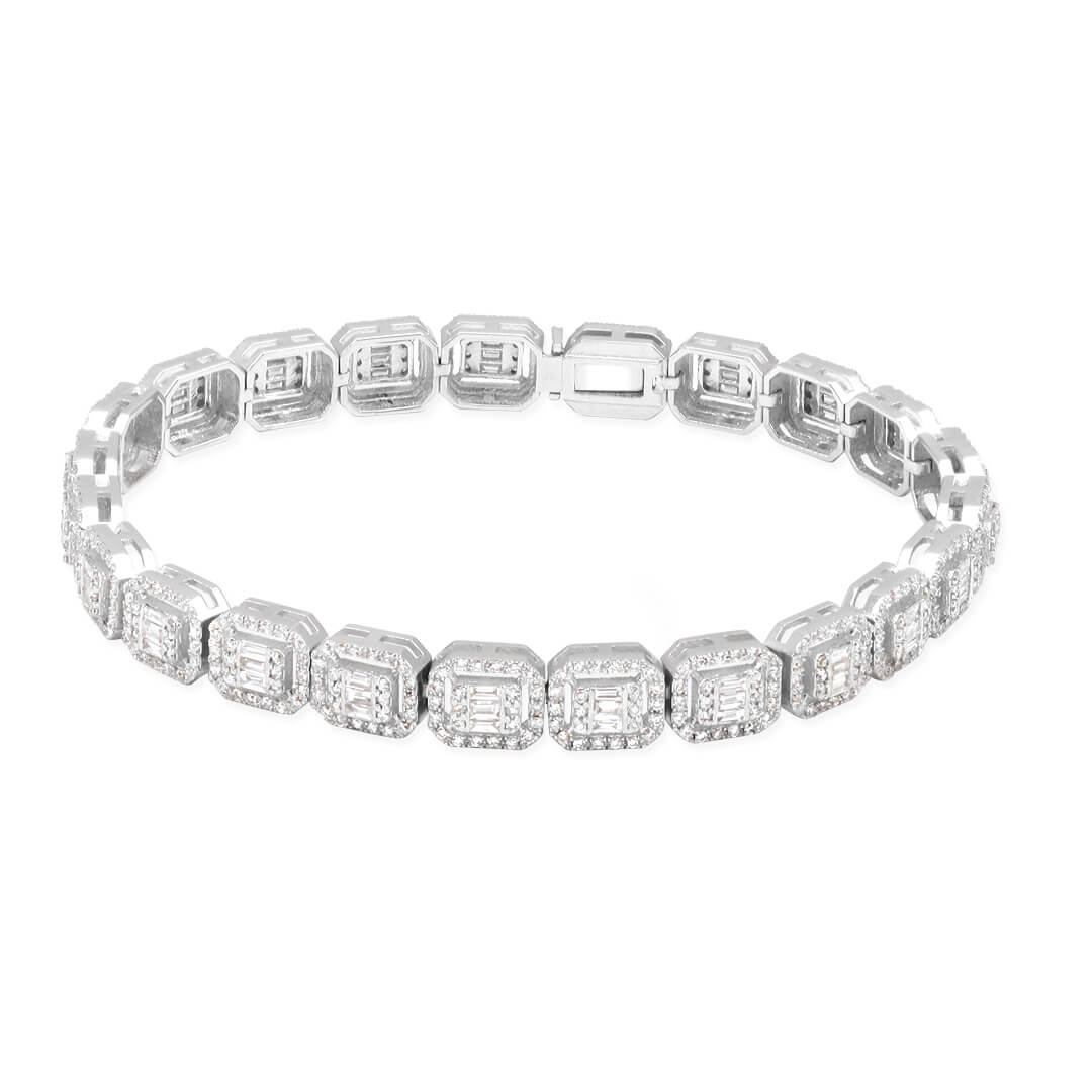 Baget ve yuvarlak kesim pırlanta taş kombinasyonu ile özel bir duruşa sahip 14 ayar beyaz altın 2.34 G-SI kesim ışıl ışıl taşlarıyla ışıltısına her anınızda hayran bırakan günlük davetlerinizde de kullanabileceğiniz fantazi model pırlanta bileklik.