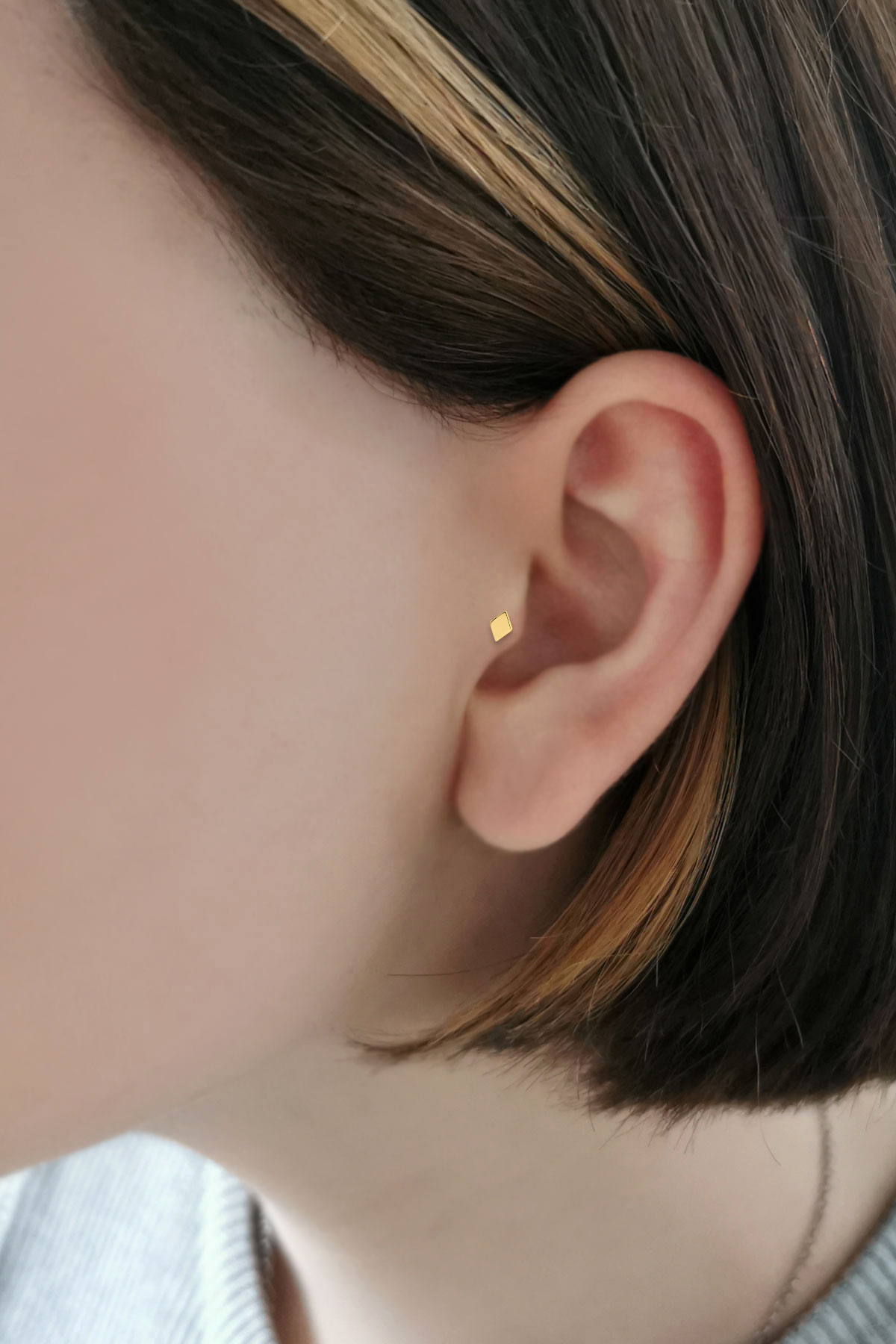 0.40 Gram Ağırlığında Taşsız Tasarımıyla Baklava Sade Moeli İle Dikkatleri Üzerine Toplayan 14 Ayar Modern ve Şık Bir Havaya Sahip 1 Cm Boyunda Tragus Altın Küpe.