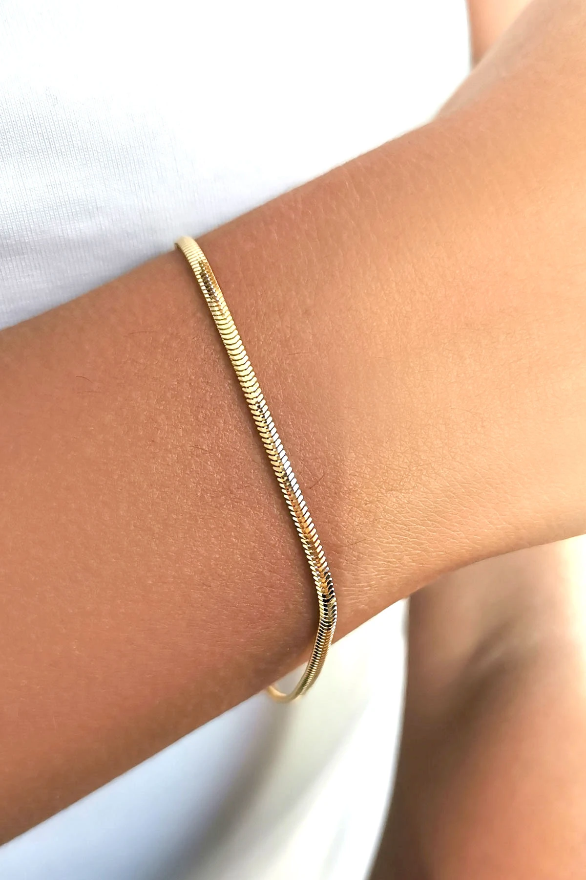 14 Ayar sarı altın sezon modası ışıl ışıl her zaman zarif ve şık duruşa sahip günlük kullanıma uygun 1.95 gram ağırlığında 18.5 Cm boyunda balık sırtı model kadın bileklik.