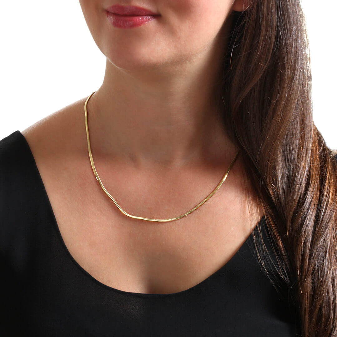 Modern ve klasik çizgiyi buluşturan altınbaş balık sırtı kolye, 14 ayar sarı altının eşsiz parlaklığıyla günlük şıklığa ya da özel davetlere zarif bir dokunuş katar. İnce işçiliği ve 50 cm zincir uzunluğu sayesinde boyunda estetik bir duruş sergiler.