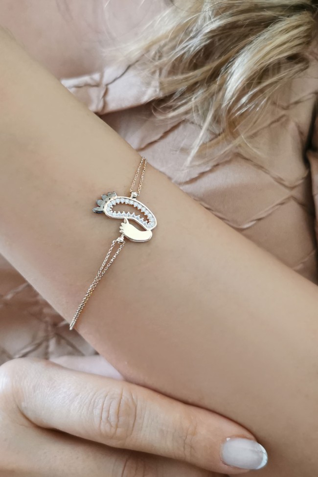 Anlam dolu modele sahip  2.20 gr ağırlığında 18 cm boyunda bebek ayağı modeliyle sevdiklerinize doğum hediyesi olarak tercih edebileceğiniz 14 ayar altın bileklik.