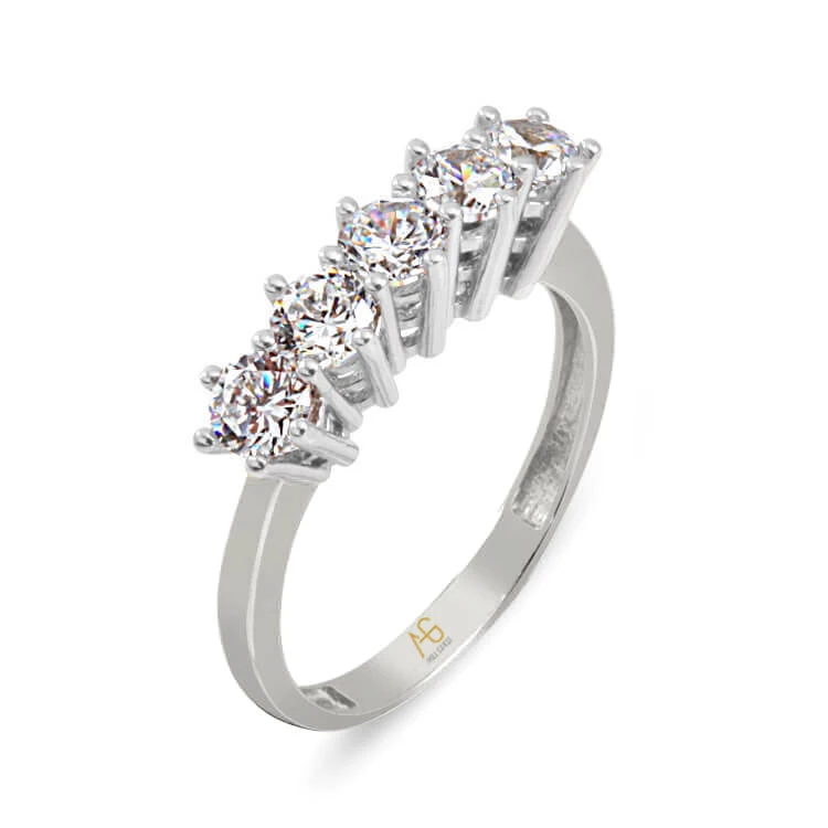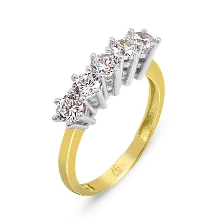 14 Ayar 4.15 gram ağırlığında zevkinize göre sarı yada beyaz altın tercihiyle satın alabileceğiniz dolgun model zirkon taşlı 5 taş yüzük.