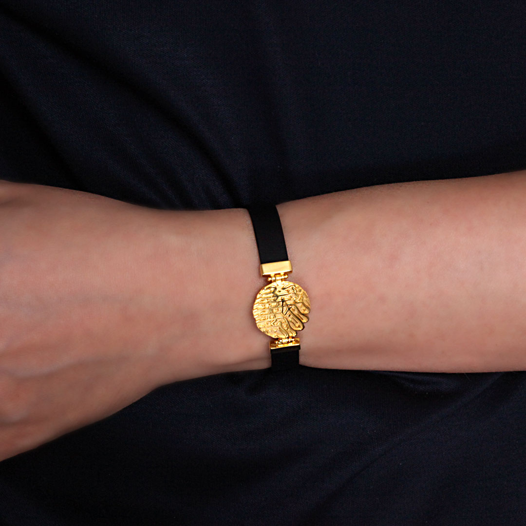 6.70 gram 14 Ayar altın besmele yazılı kauçuk bileklik ile manevi duygularınızı her an yanınızda hissedeceğiniz, duanın ve yaradanın koruyuculuğuna inanarak modellendirilmiş altın bileklik.